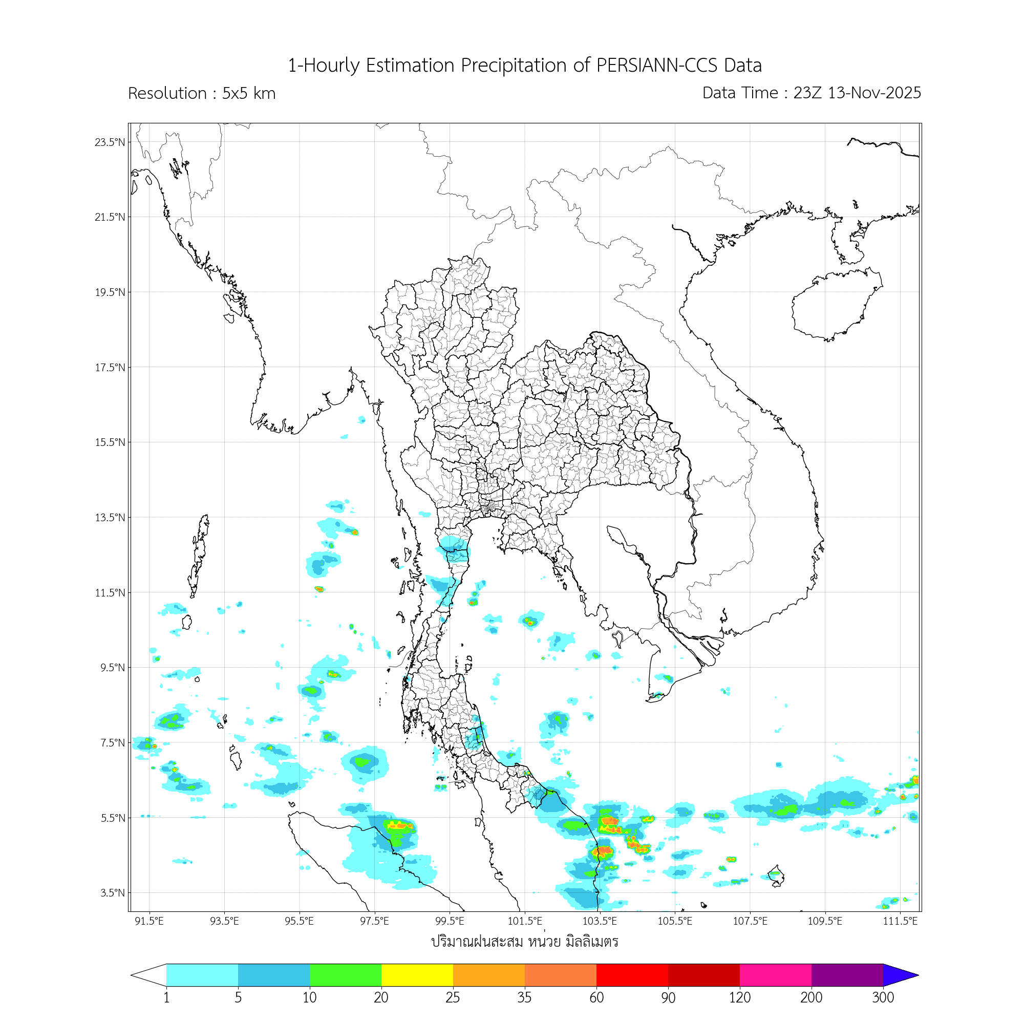 การประมาณค่าฝนจากดาวเทียม เมื่อวาน (13/11/2025)