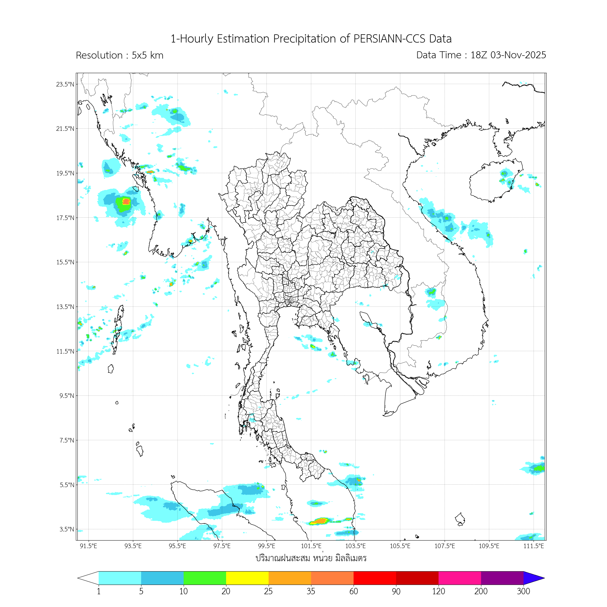 การประมาณค่าฝนจากดาวเทียม เมื่อวาน (03/11/2025)