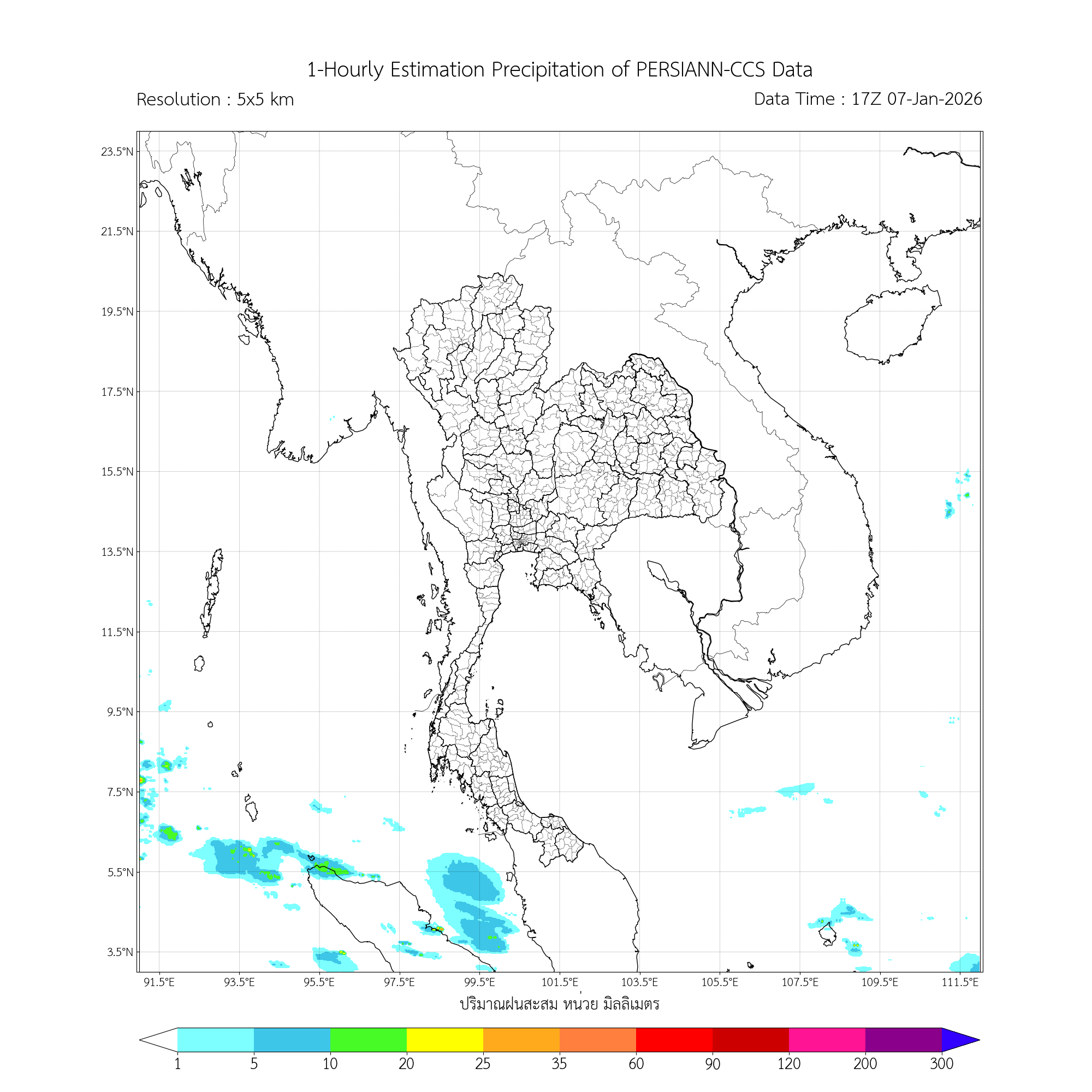 การประมาณค่าฝนจากดาวเทียม เมื่อวาน (07/01/2026)