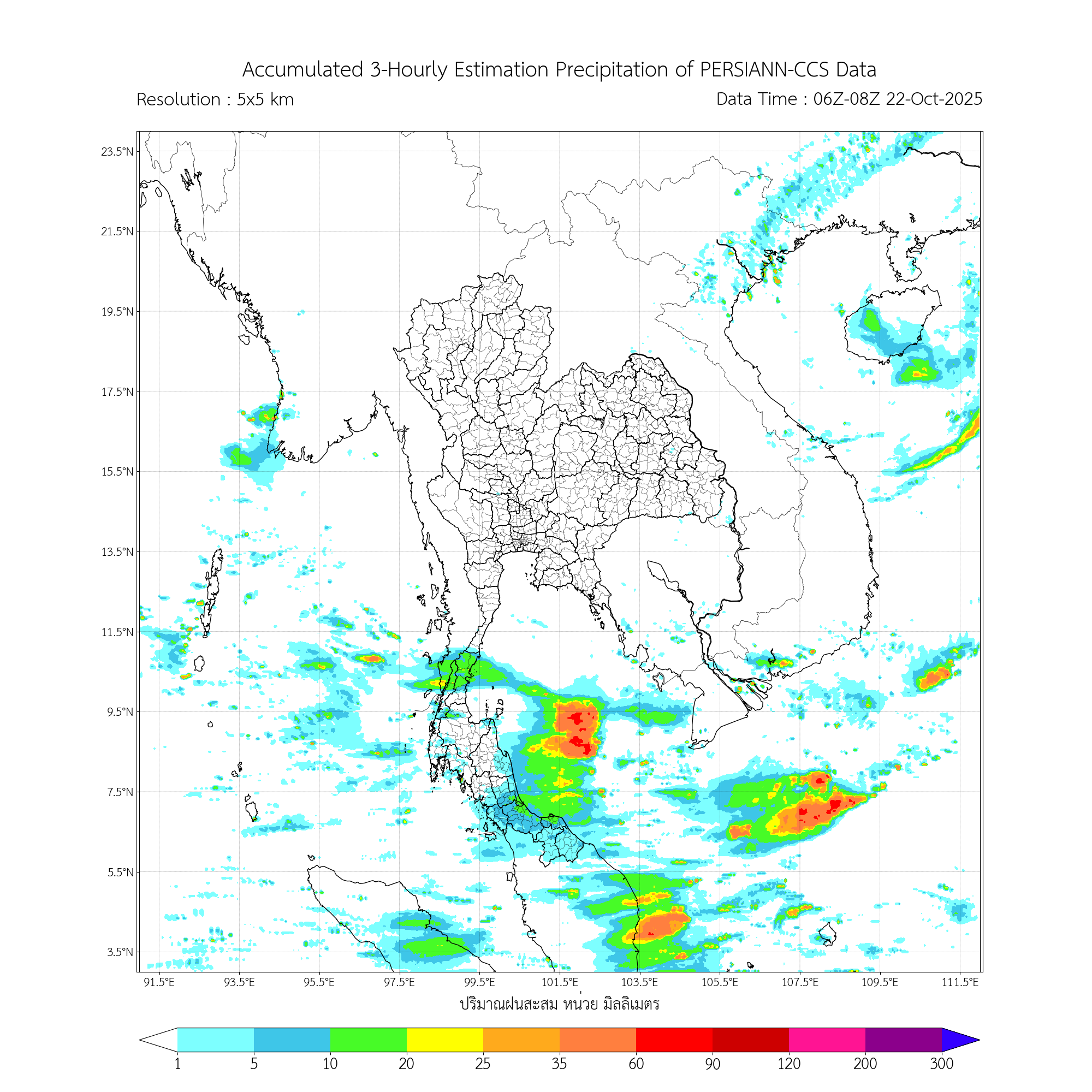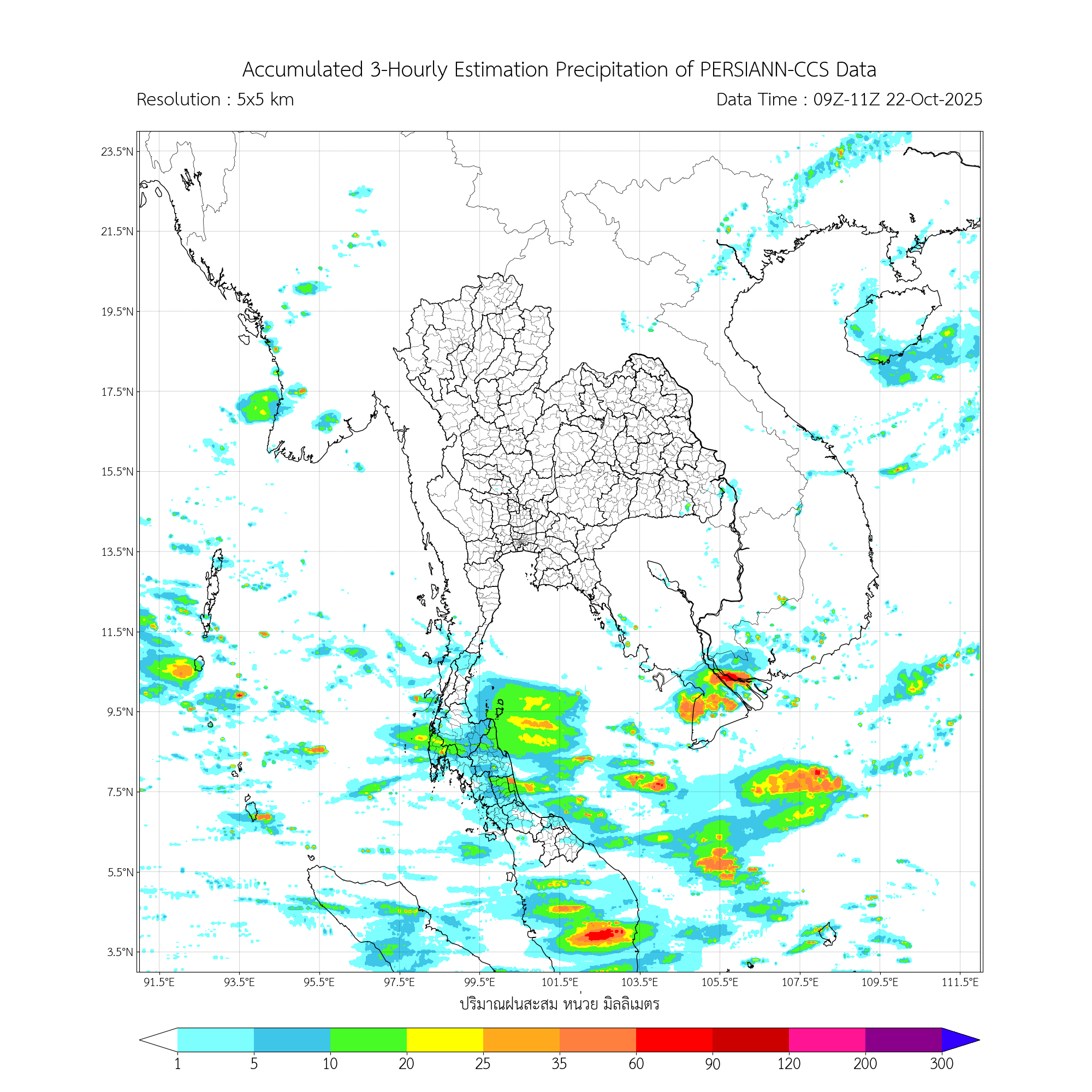 ค่าประมาณฝนสะสม 3 ชั่วโมง จากดาวเทียมอุตุนิยมวิทยา