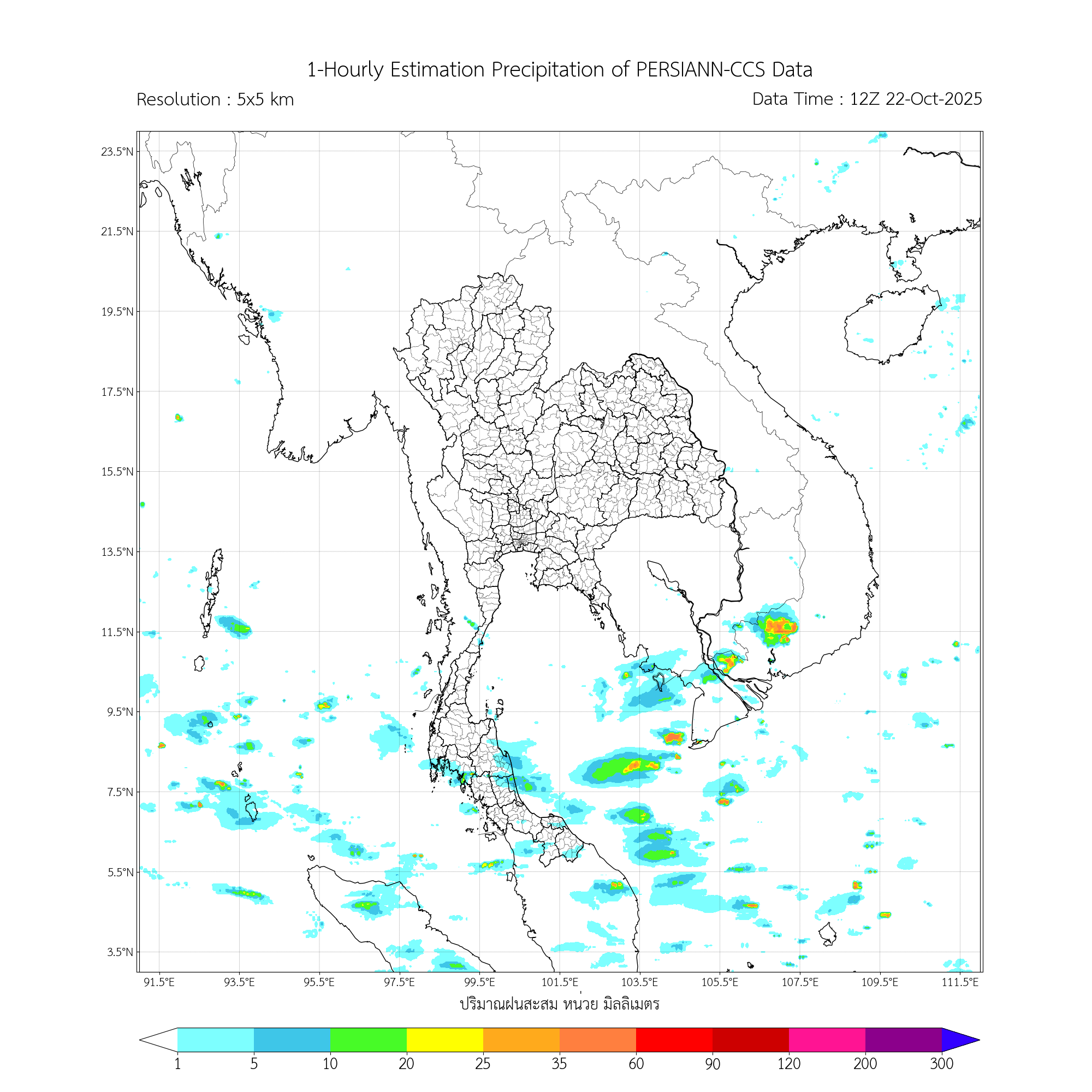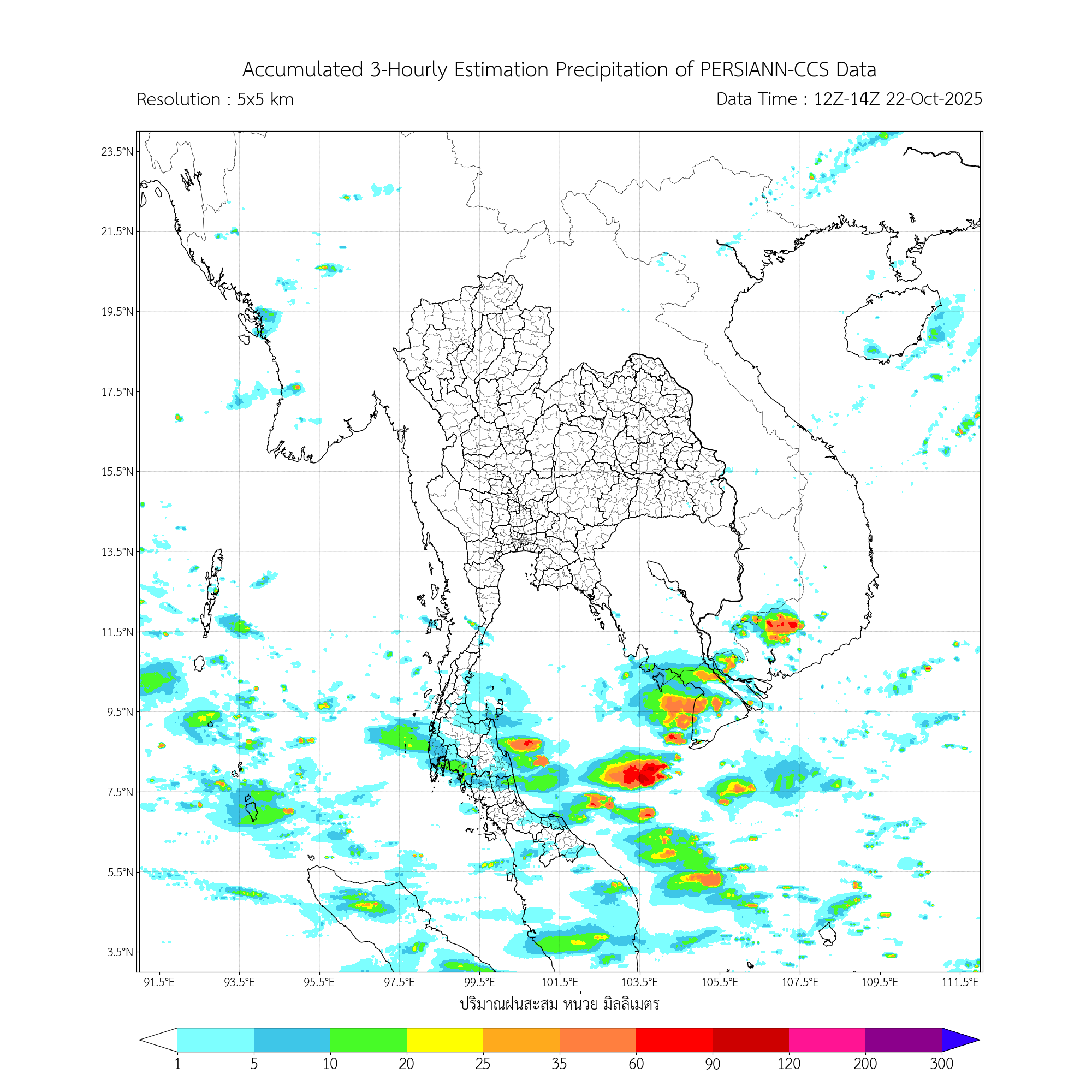 การประมาณค่าฝนจากดาวเทียม เมื่อวาน (21/10/2025)
