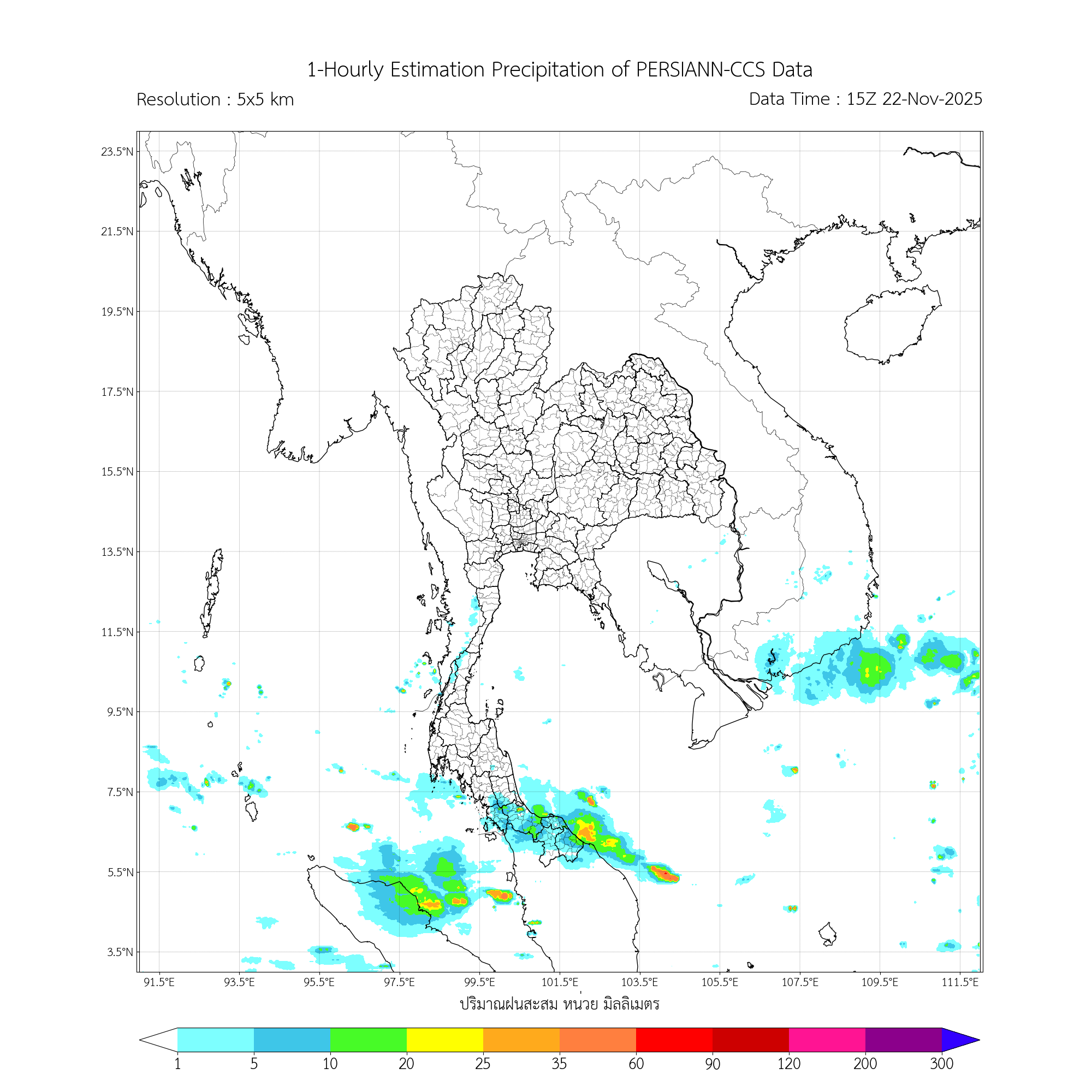 การประมาณค่าฝนจากดาวเทียม เมื่อวาน (22/11/2025)