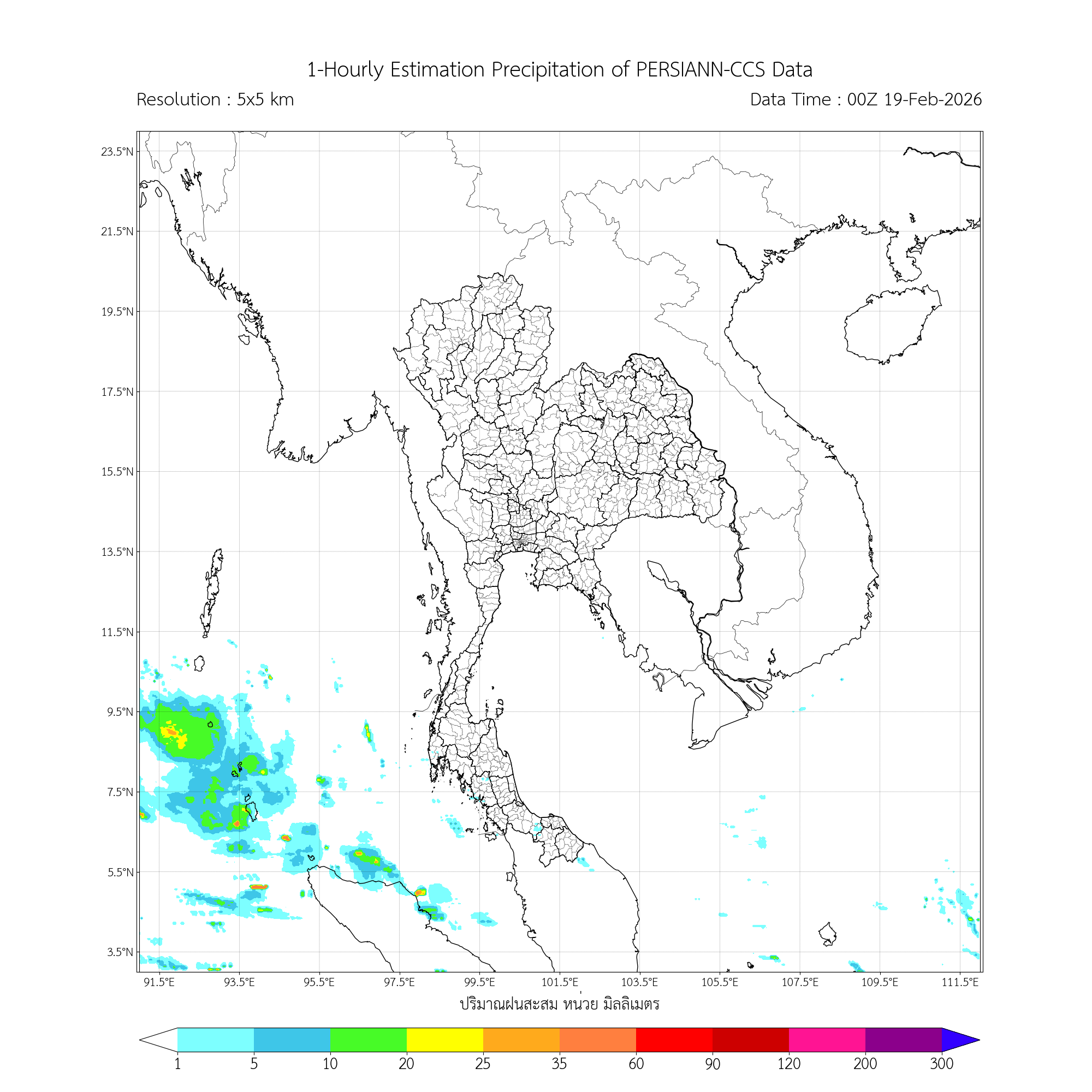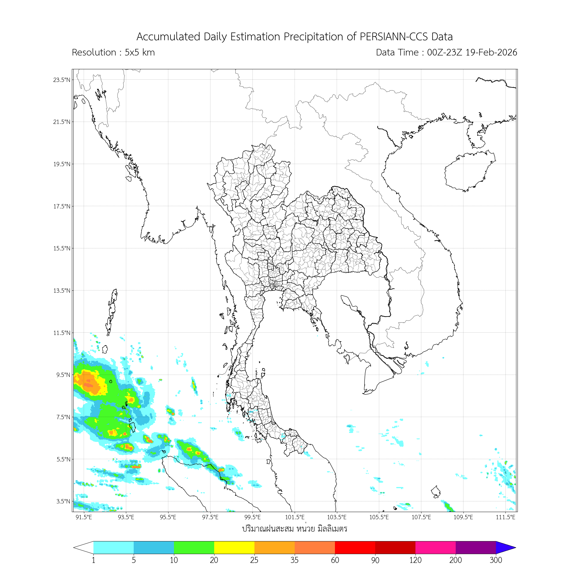 การประมาณค่าฝนจากดาวเทียม เมื่อวาน (18/02/2026)