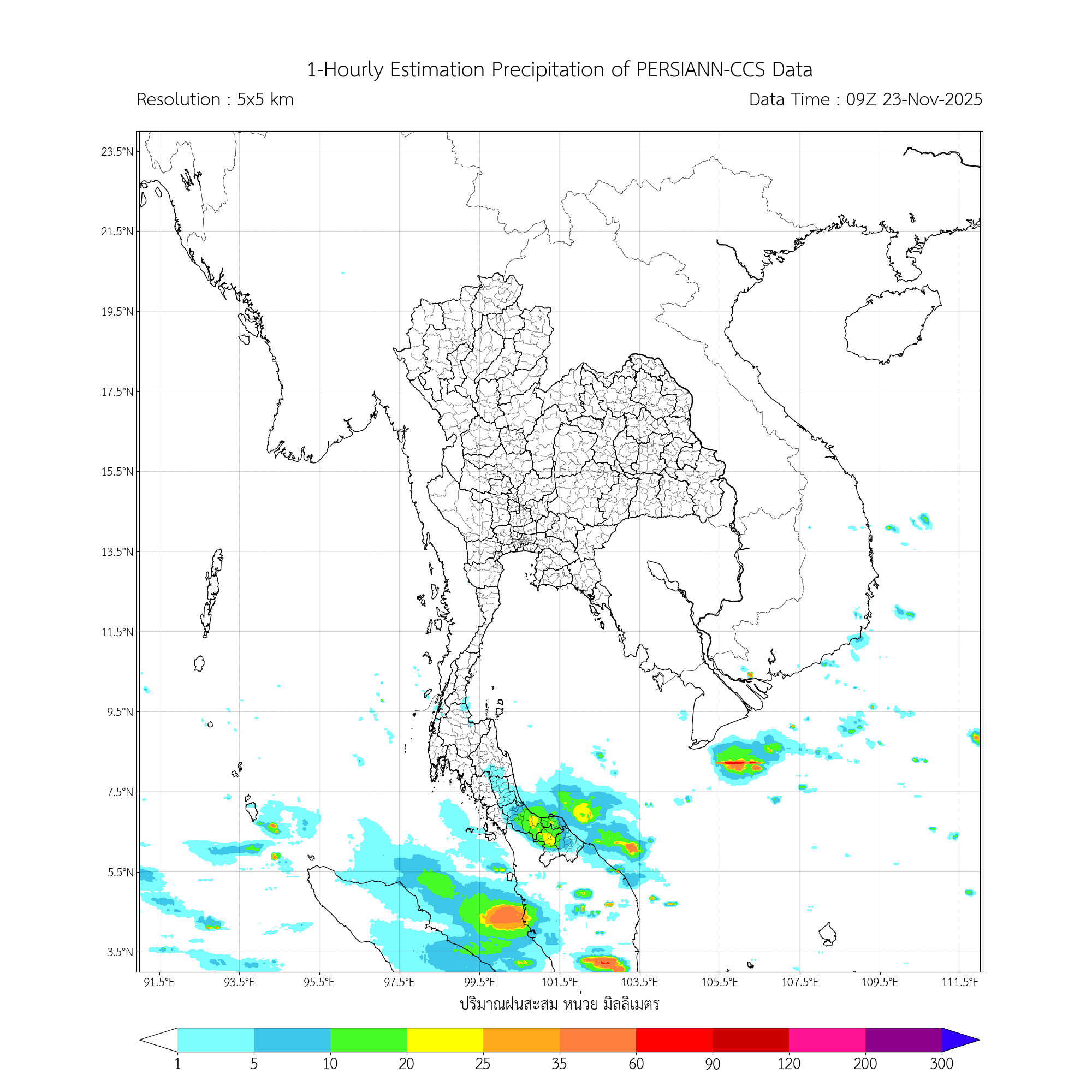 การประมาณค่าฝนจากดาวเทียม เมื่อวาน (22/11/2025)