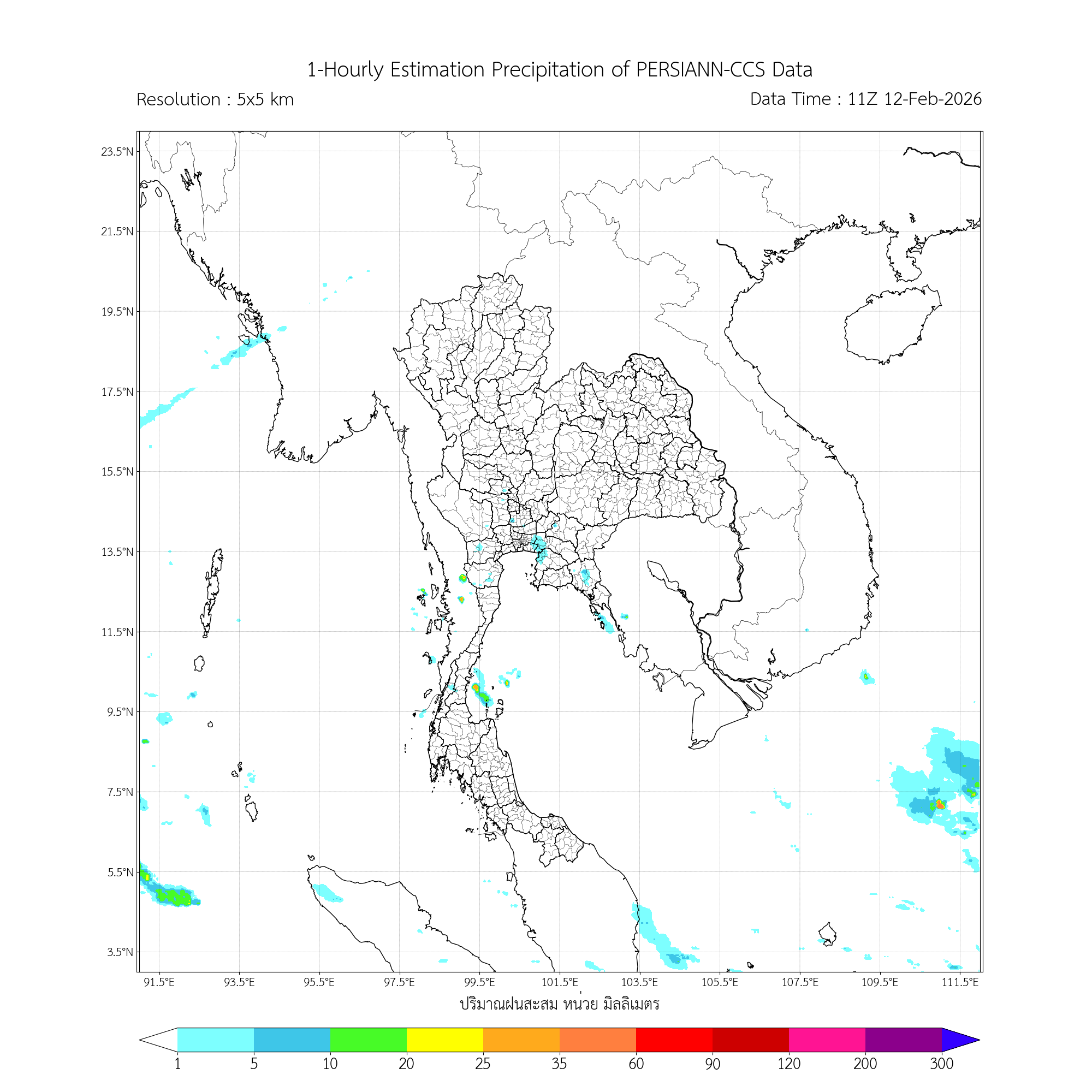 การประมาณค่าฝนจากดาวเทียม เมื่อวาน (11/02/2026)