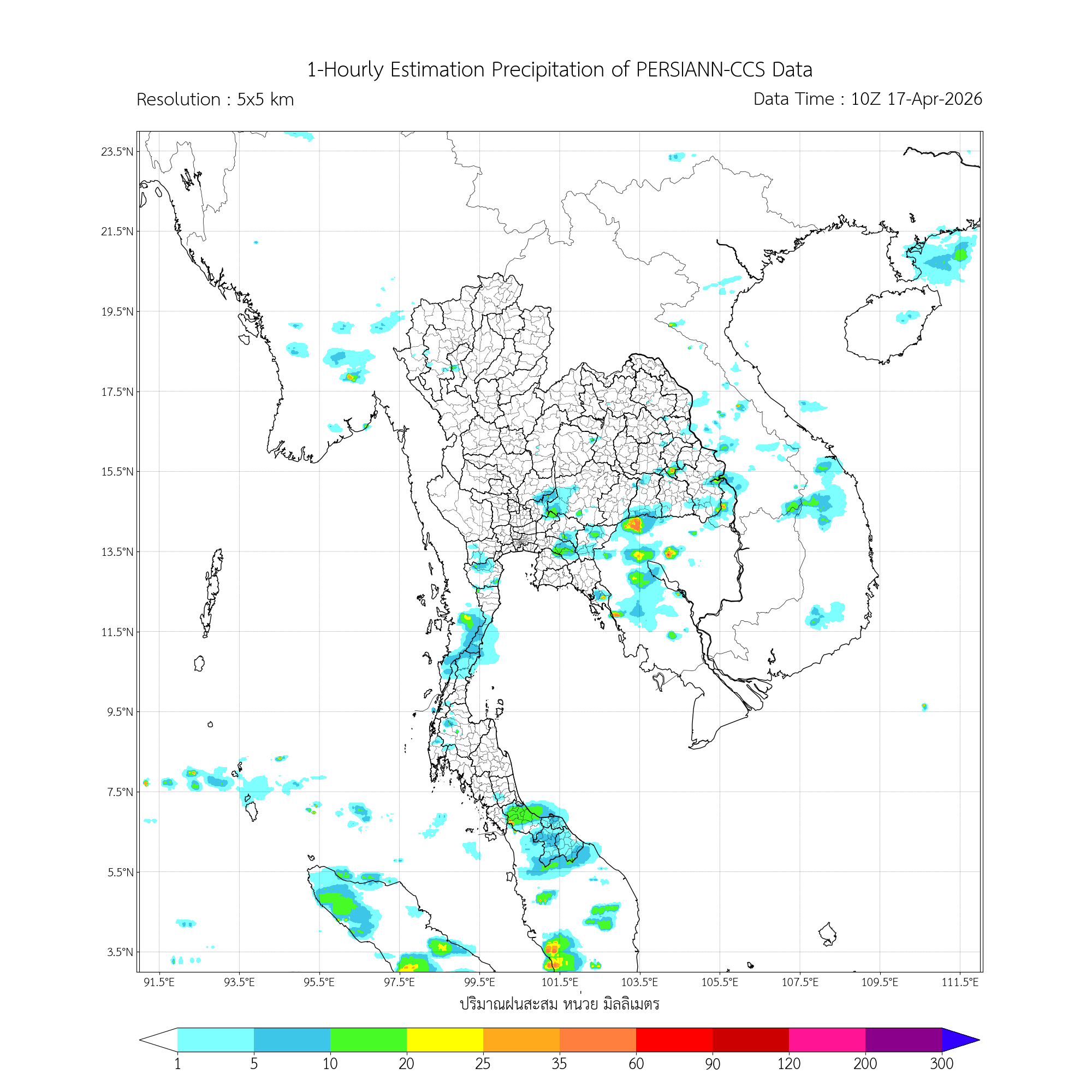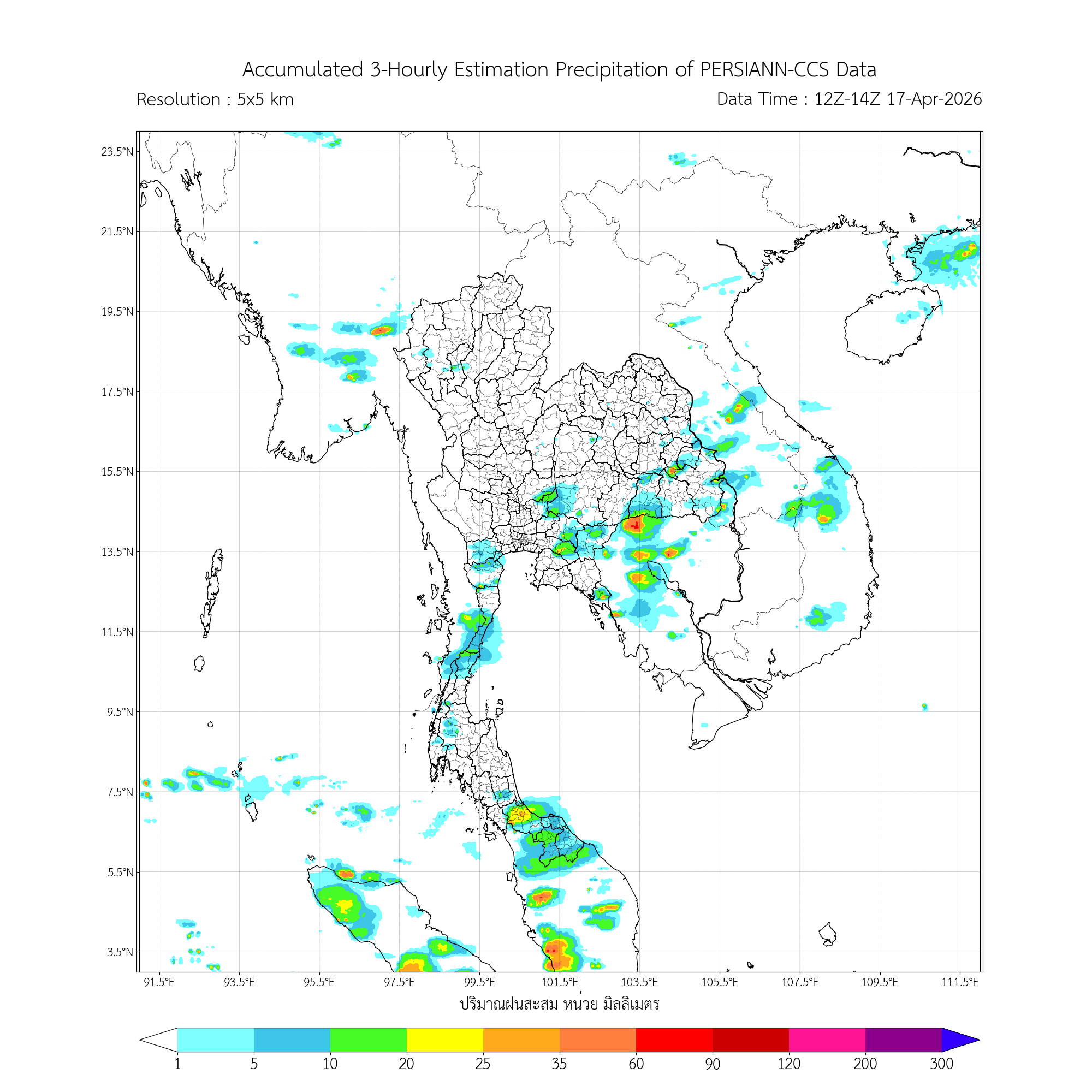 การประมาณค่าฝนจากดาวเทียม เมื่อวาน (16/04/2026)