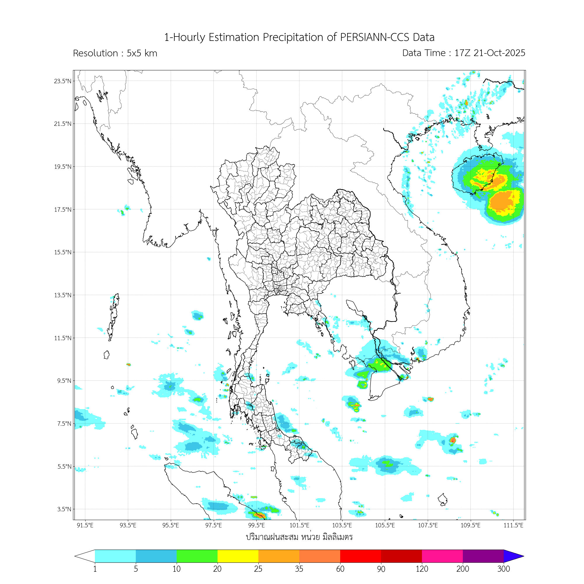 การประมาณค่าฝนจากดาวเทียม เมื่อวาน (21/10/2025)