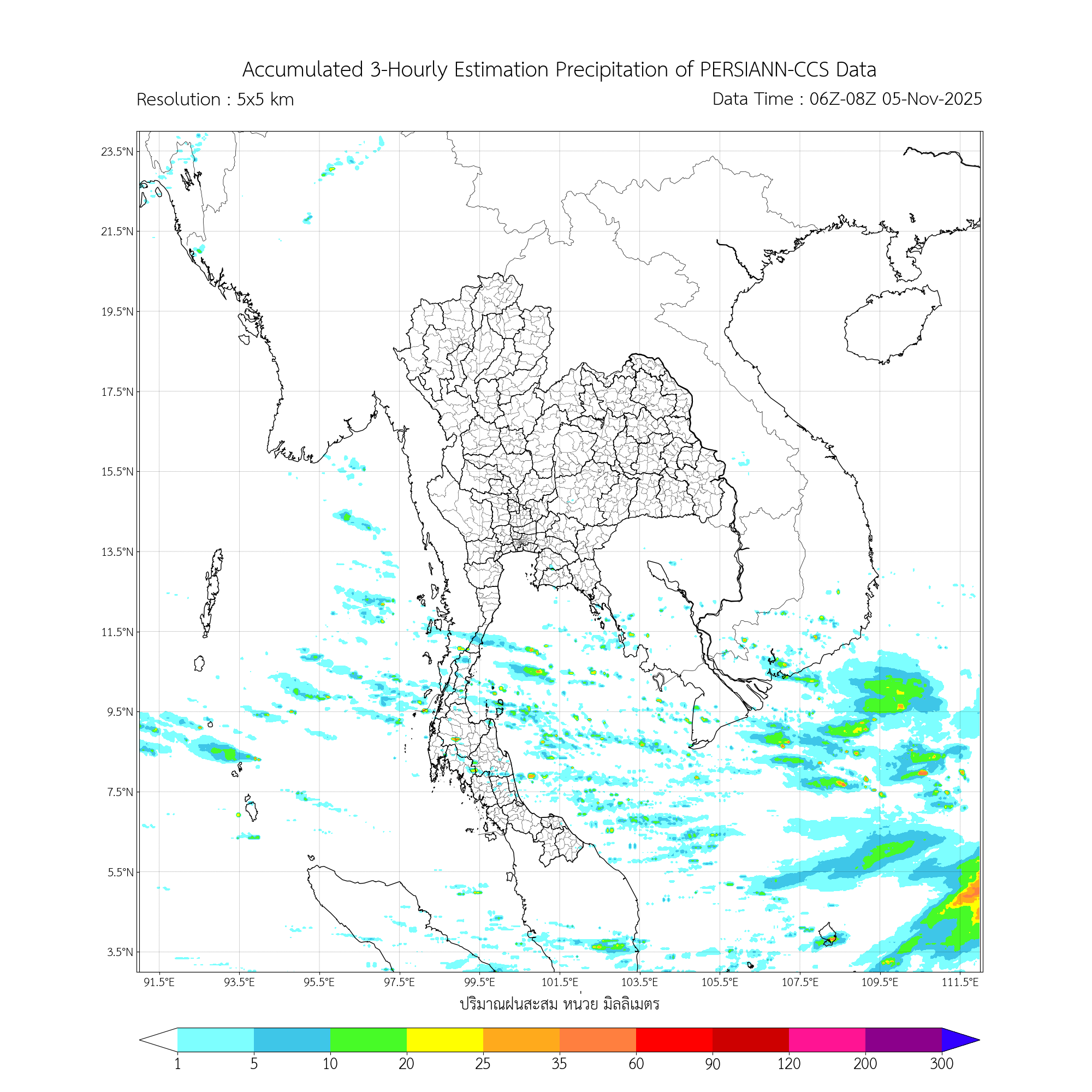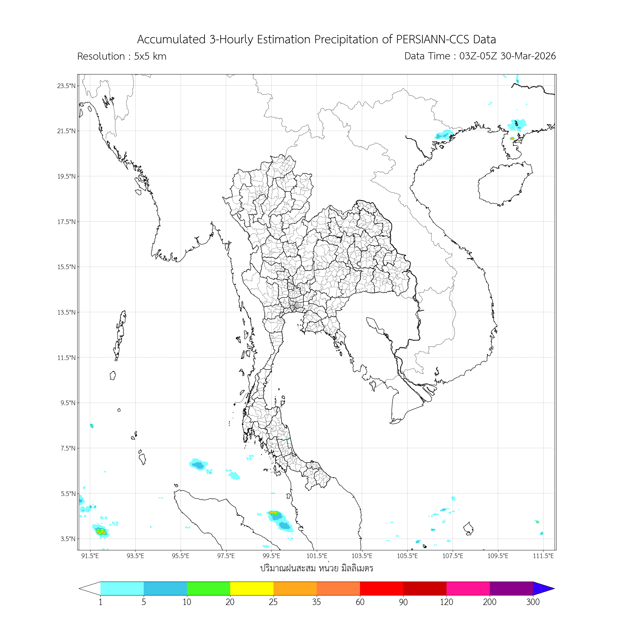 ค่าประมาณฝนสะสม 3 ชั่วโมง จากดาวเทียมอุตุนิยมวิทยา