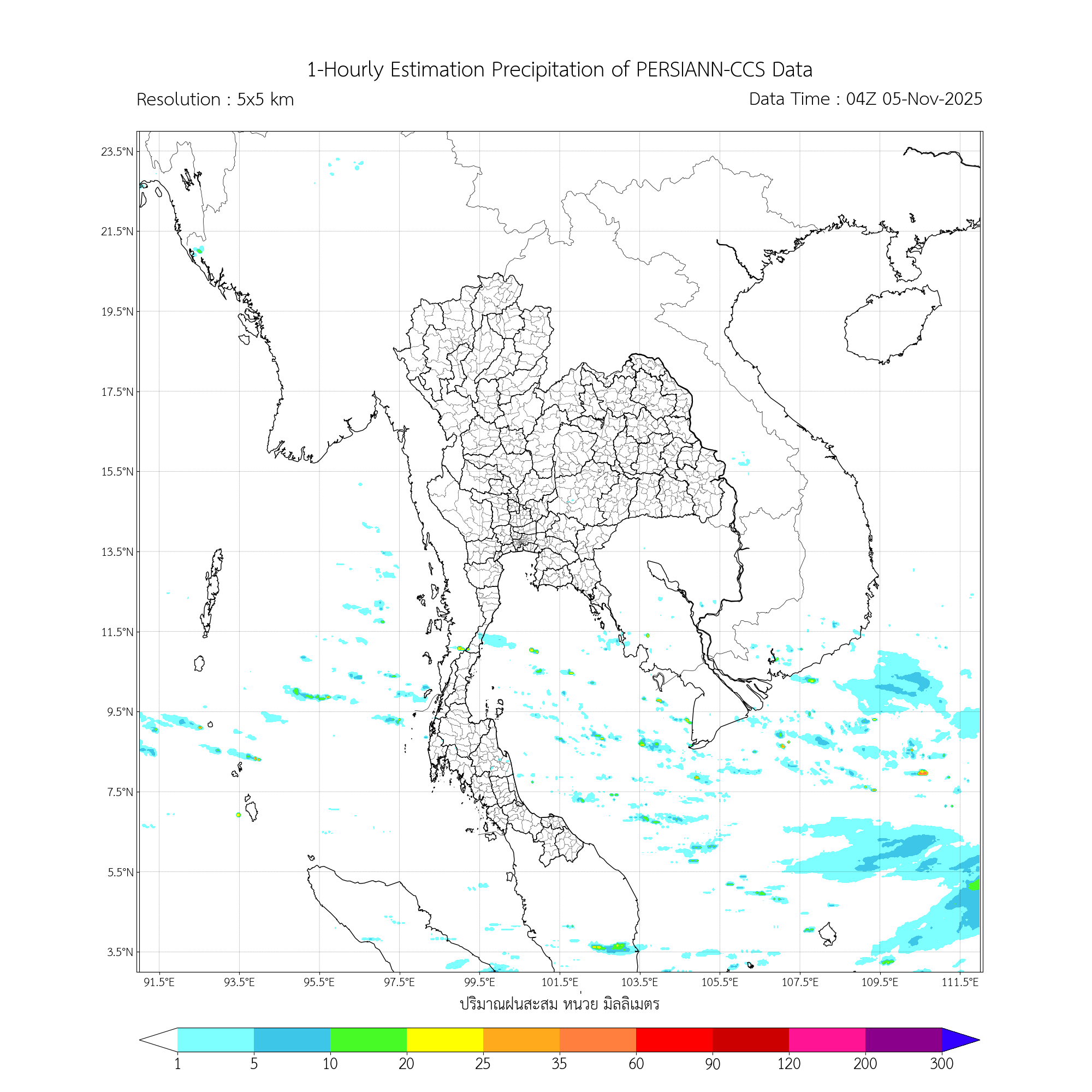 การประมาณค่าฝนจากดาวเทียม เมื่อวาน (04/11/2025)