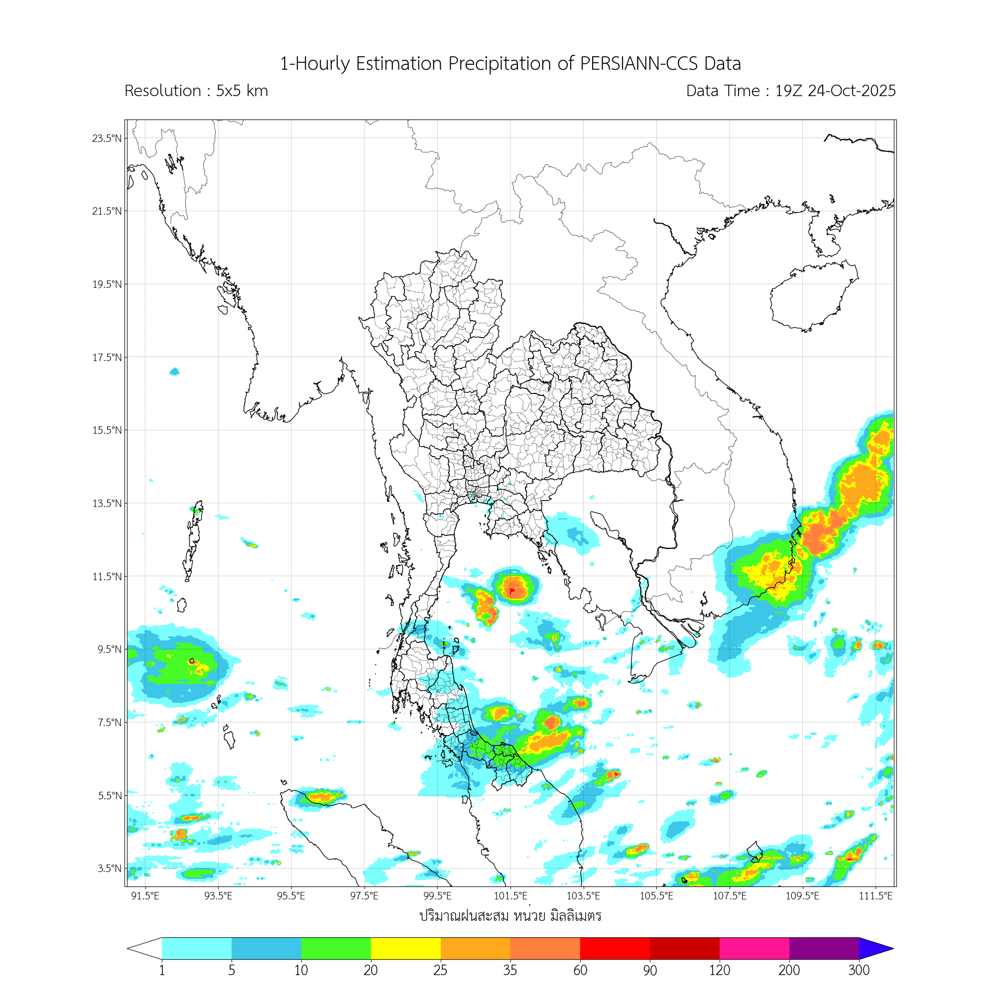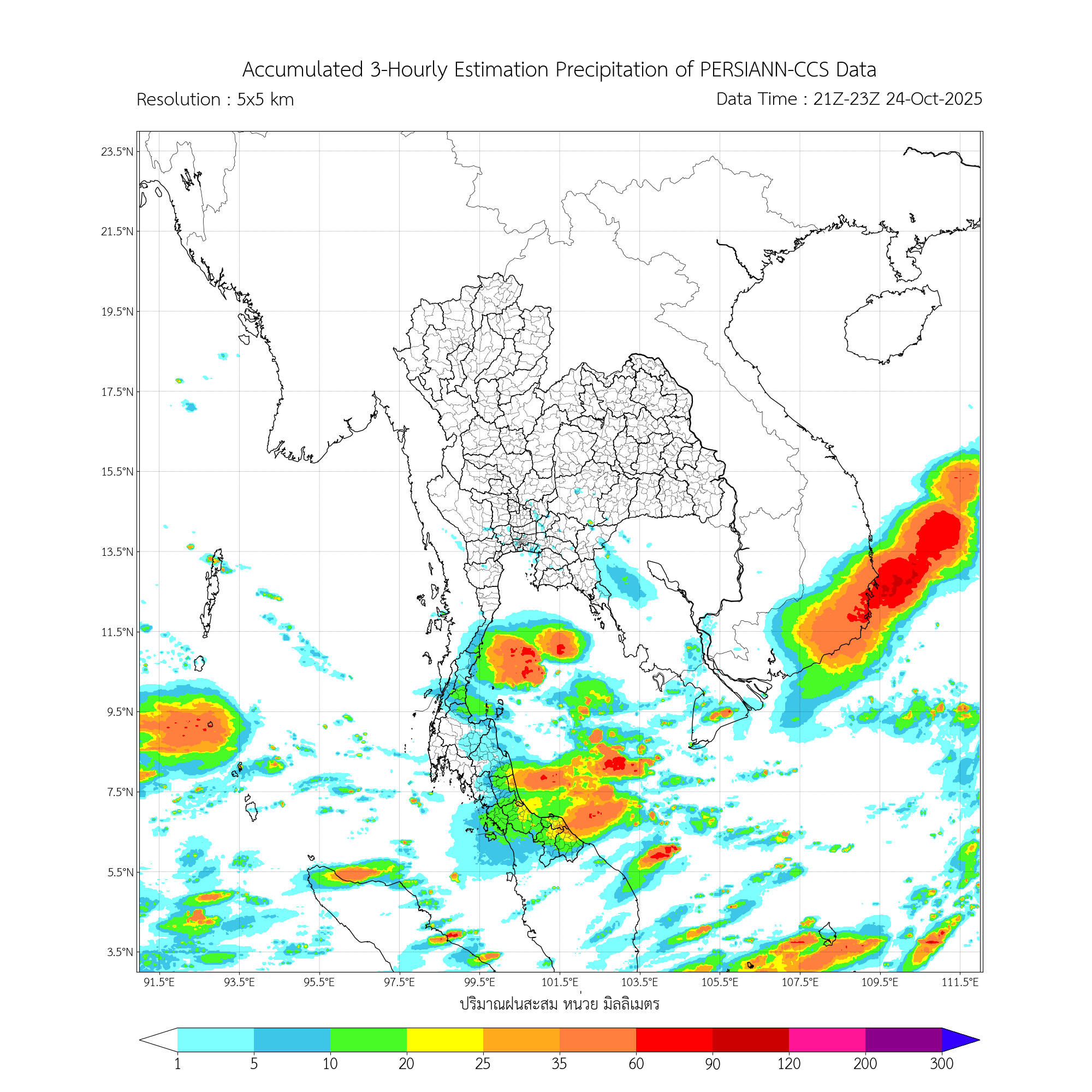 การประมาณค่าฝนจากดาวเทียม เมื่อวาน (24/10/2025)