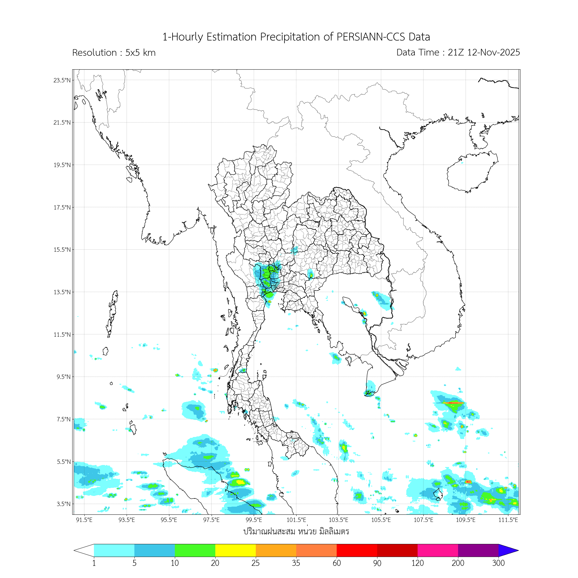 การประมาณค่าฝนจากดาวเทียม เมื่อวาน (12/11/2025)