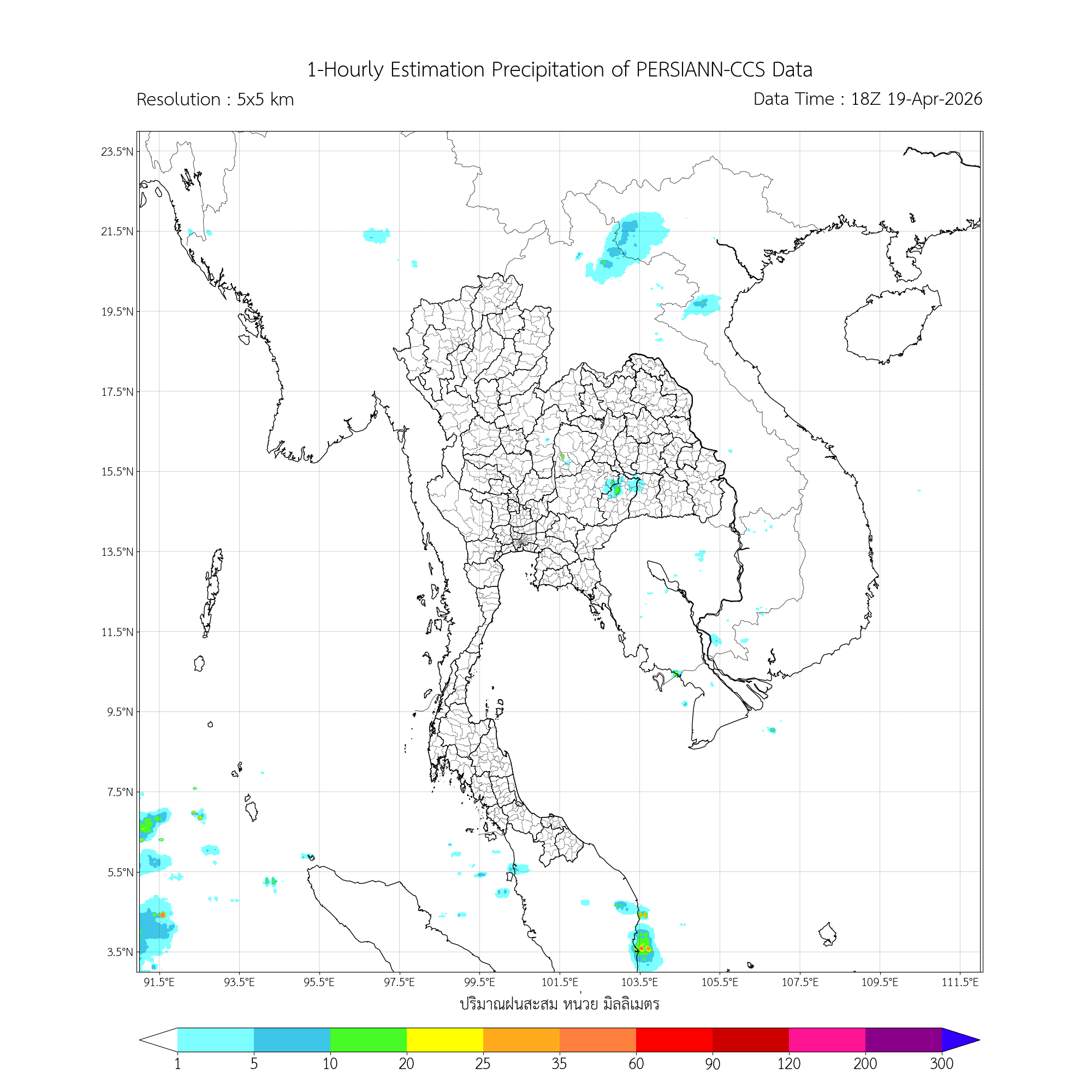 การประมาณค่าฝนจากดาวเทียม เมื่อวาน (19/04/2026)