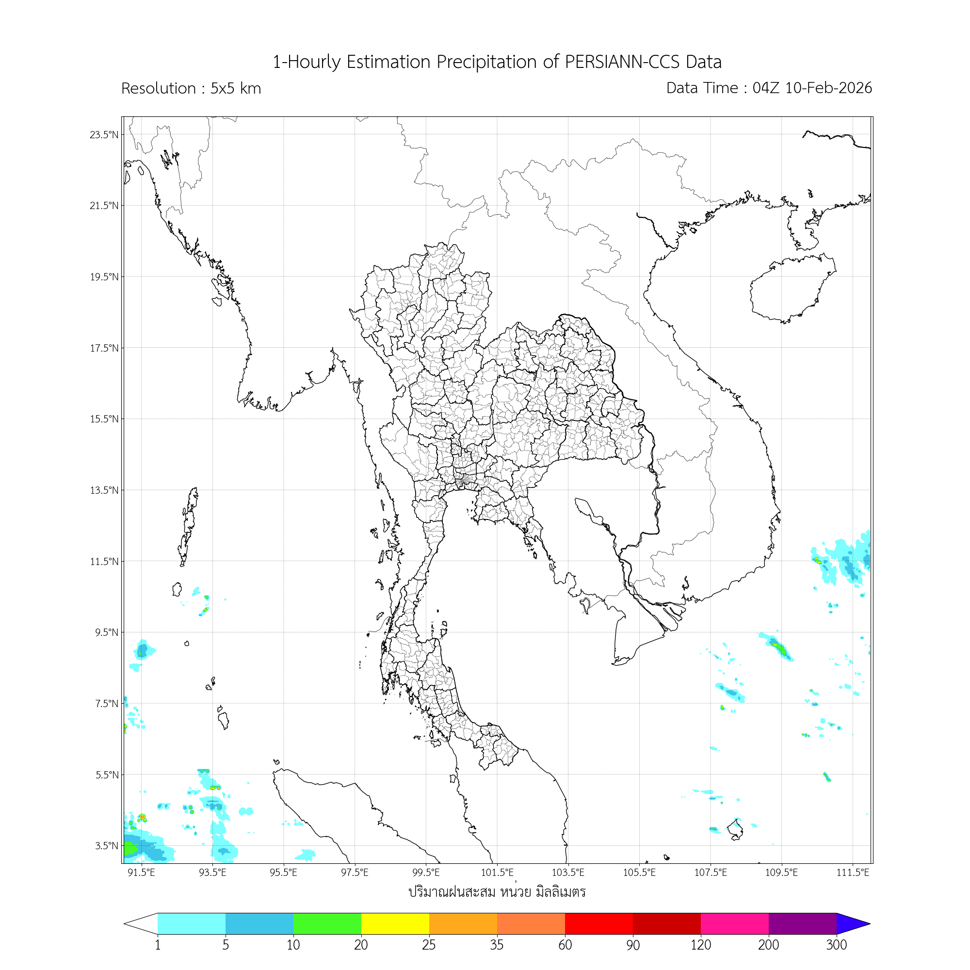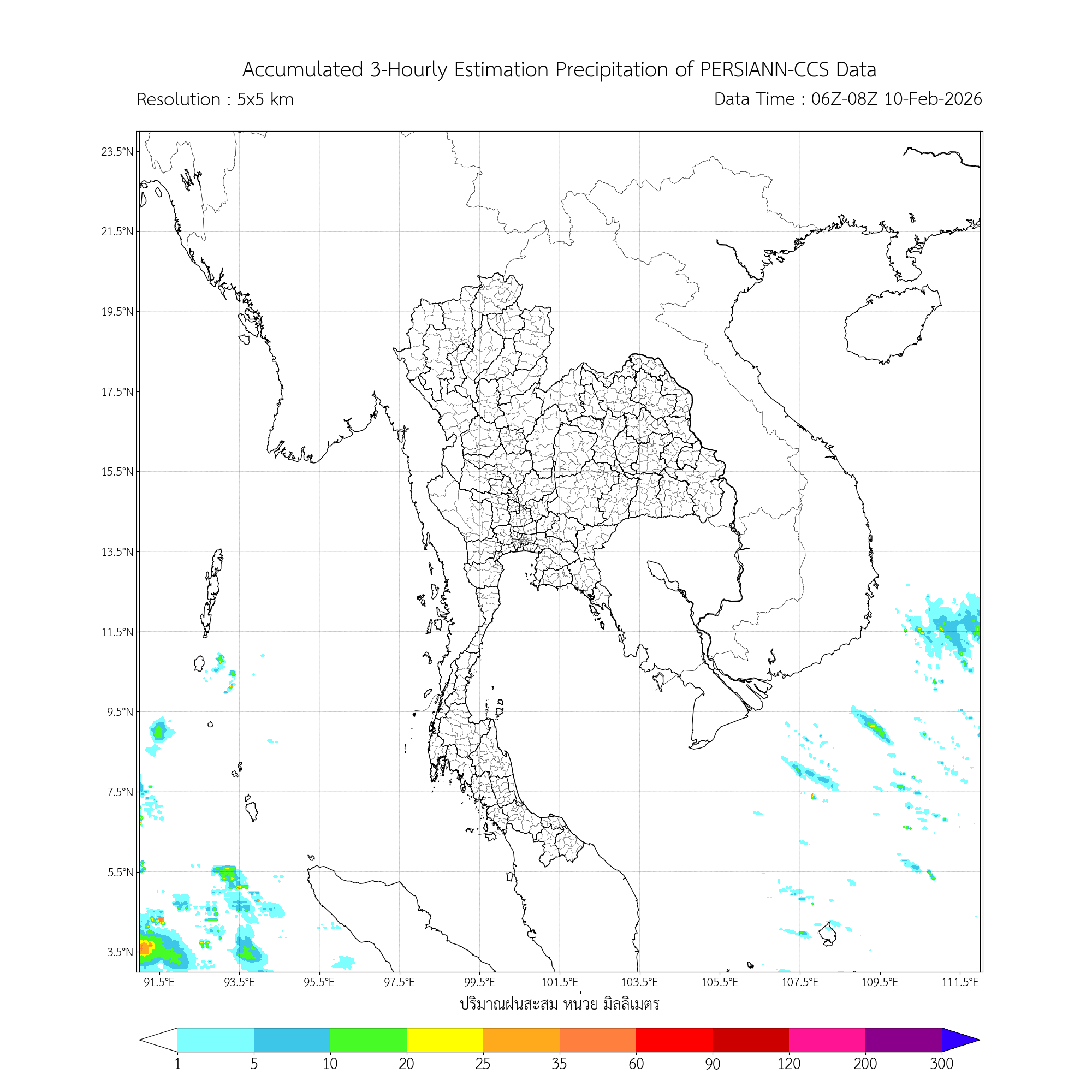 การประมาณค่าฝนจากดาวเทียม เมื่อวาน (09/02/2026)