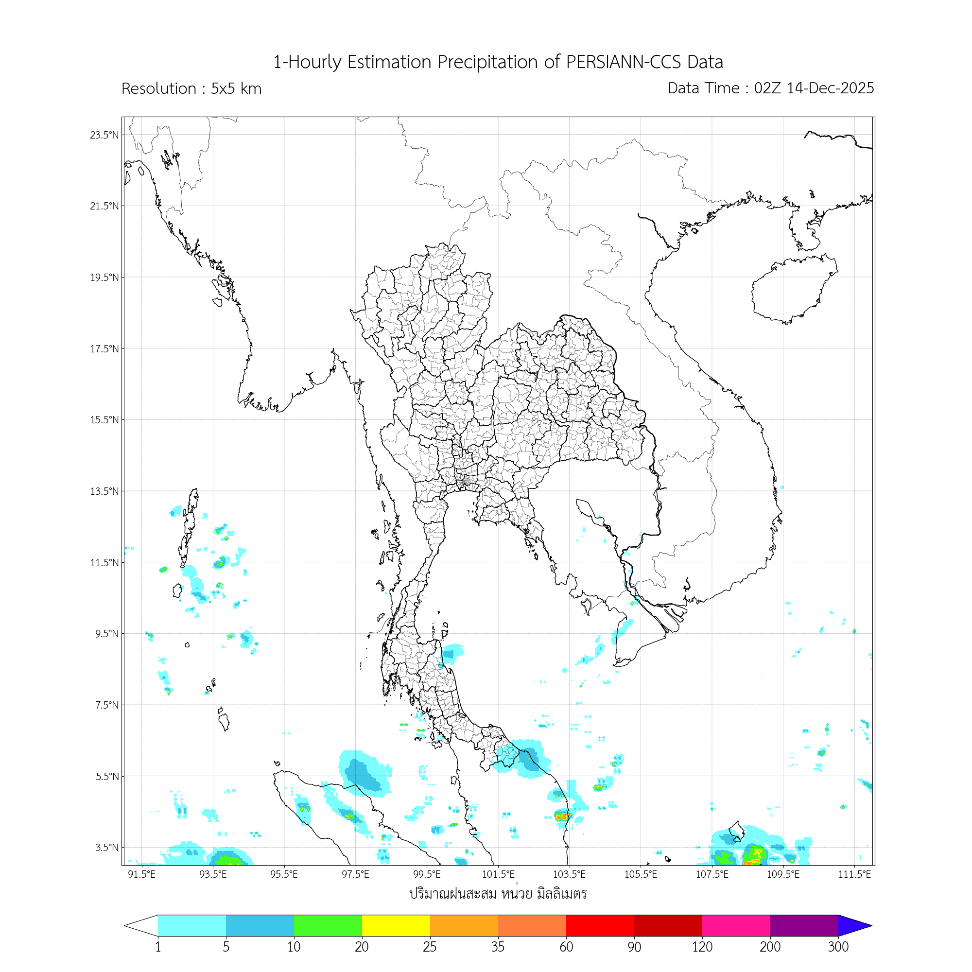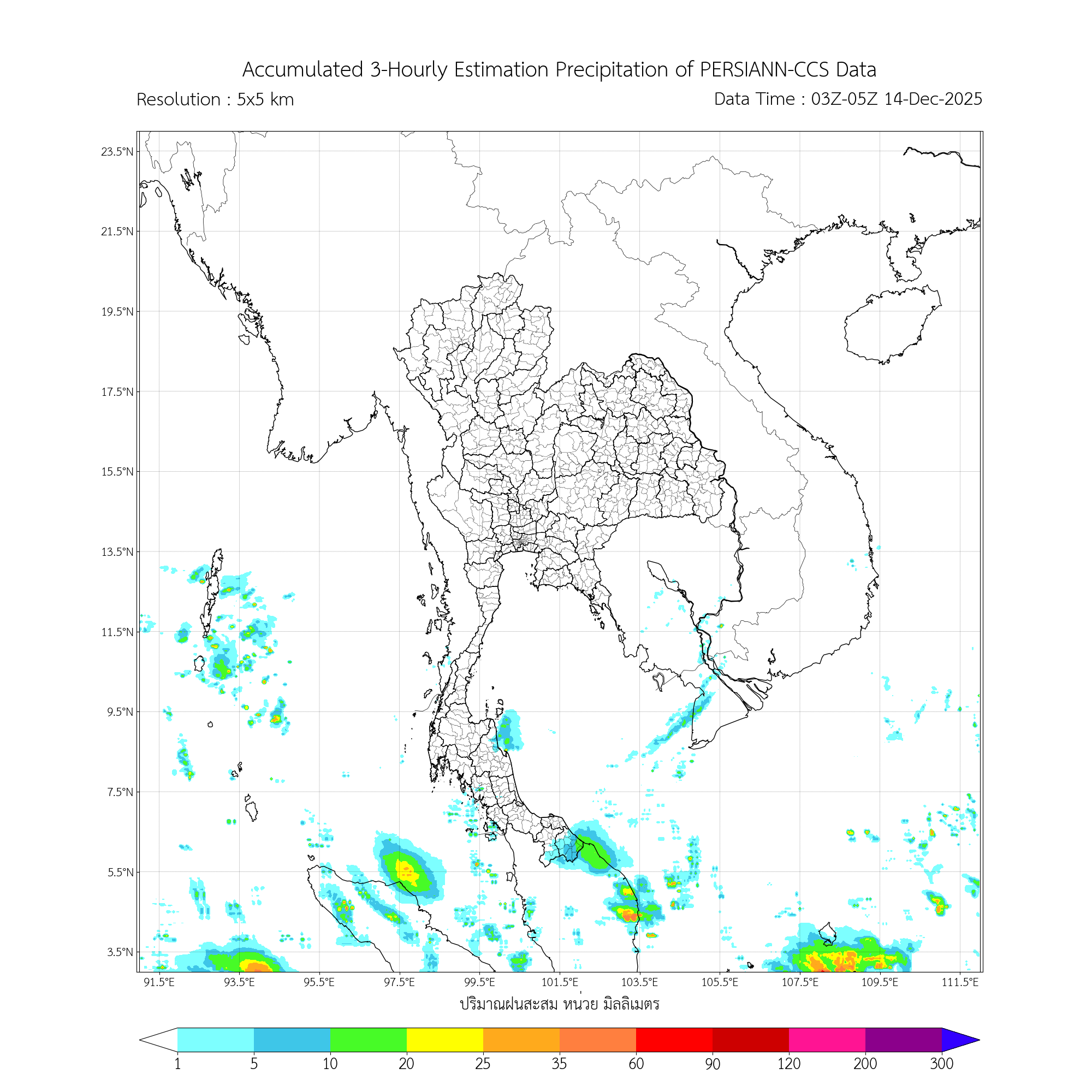 การประมาณค่าฝนจากดาวเทียม เมื่อวาน (13/12/2025)