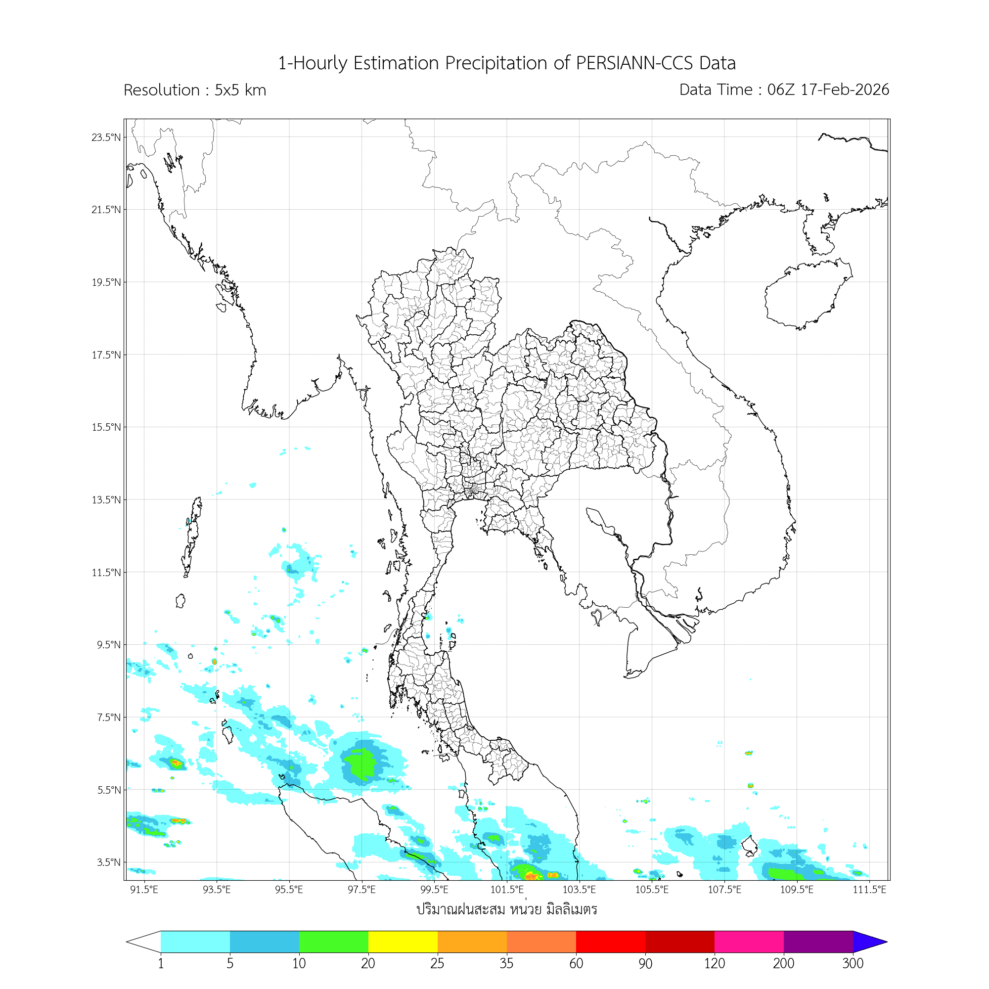 การประมาณค่าฝนจากดาวเทียม เมื่อวาน (16/02/2026)