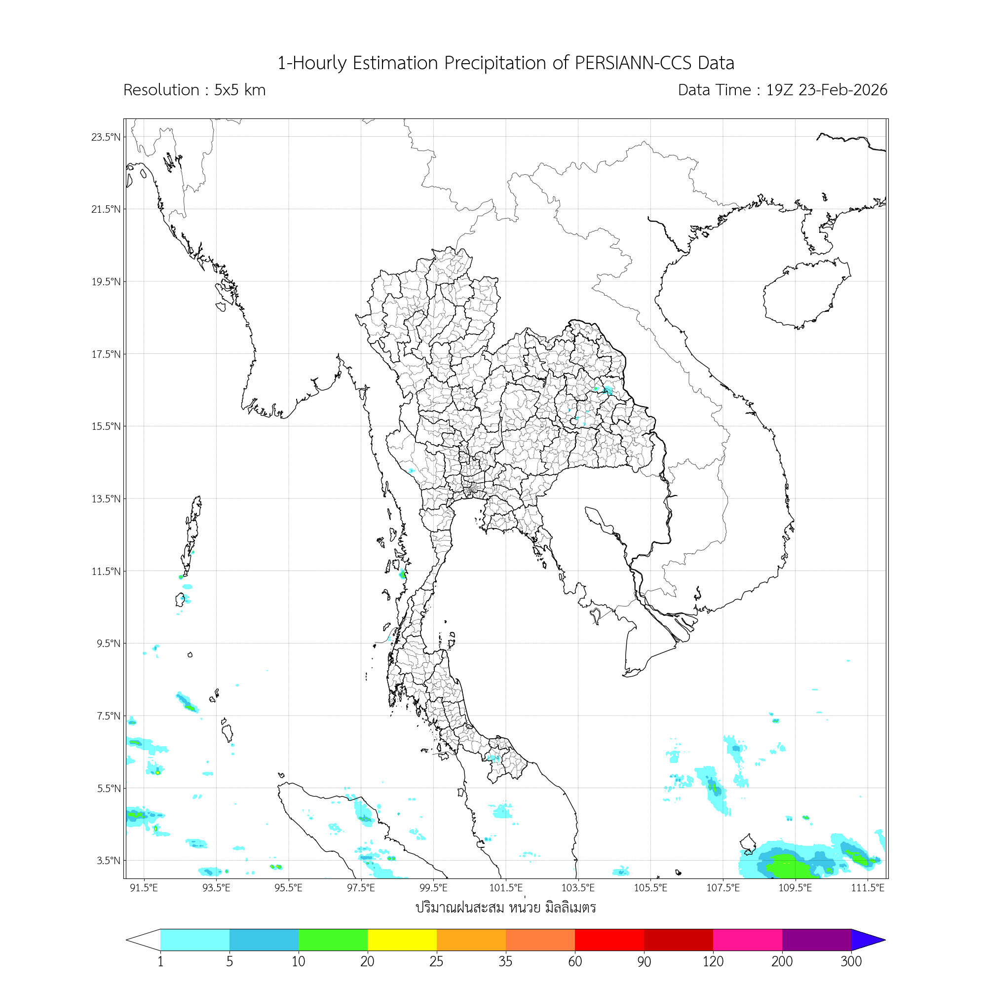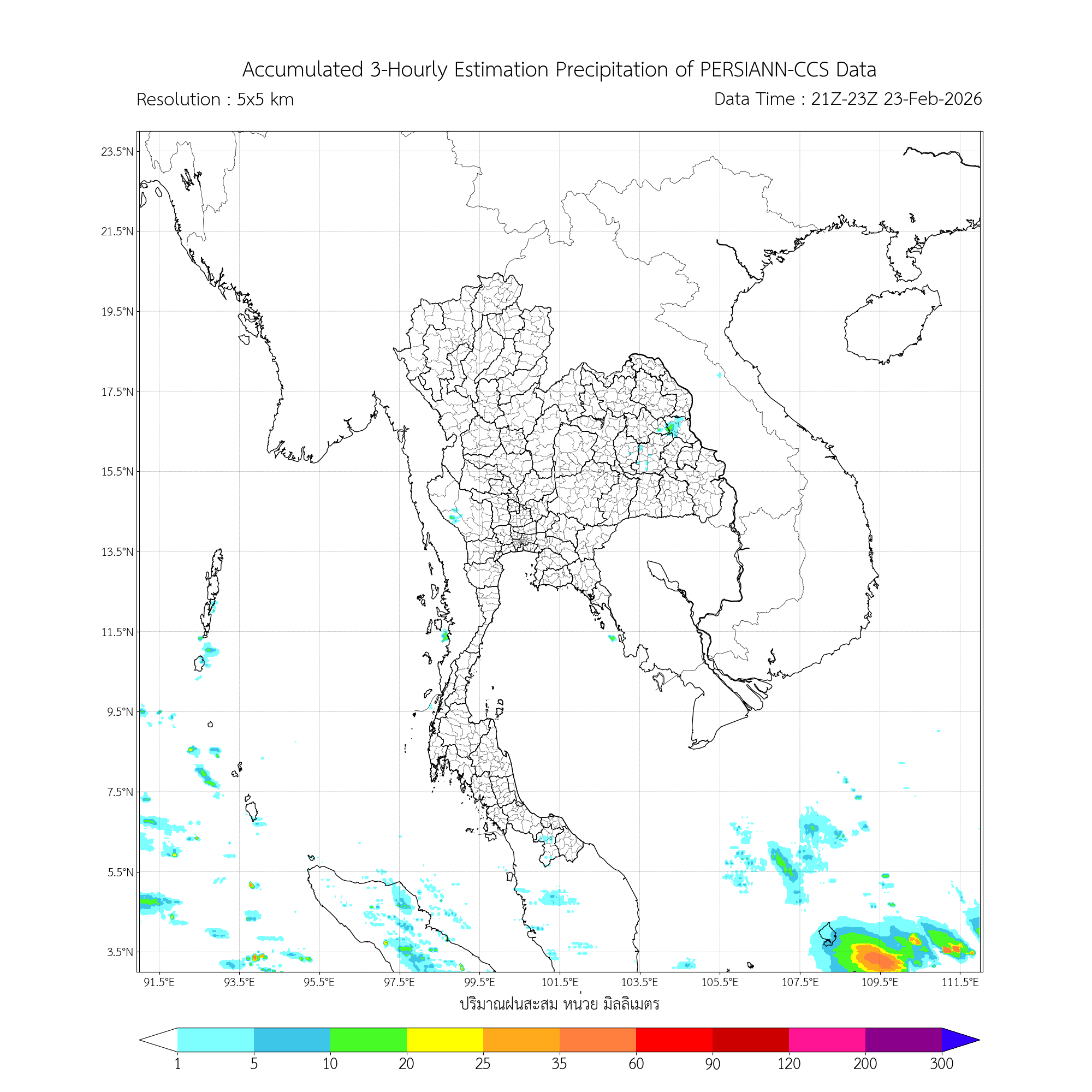 การประมาณค่าฝนจากดาวเทียม เมื่อวาน (23/02/2026)