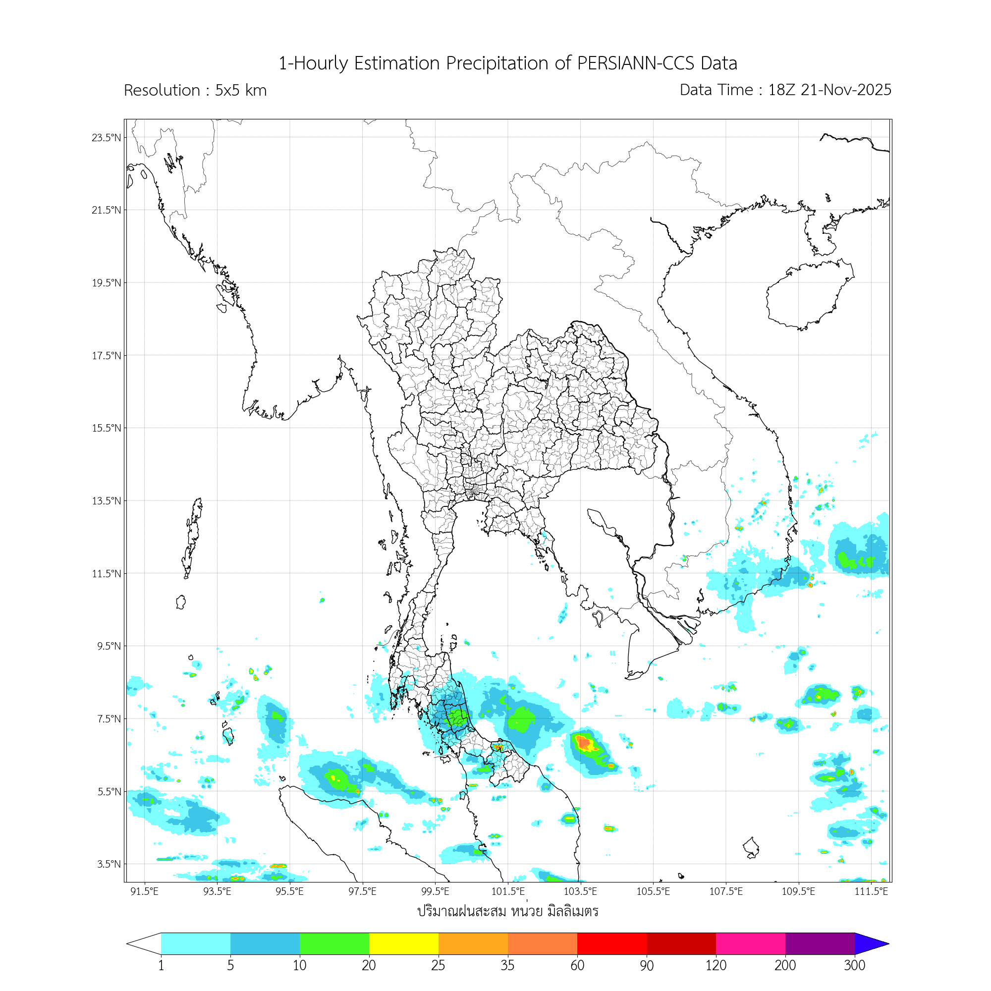 การประมาณค่าฝนจากดาวเทียม เมื่อวาน (21/11/2025)