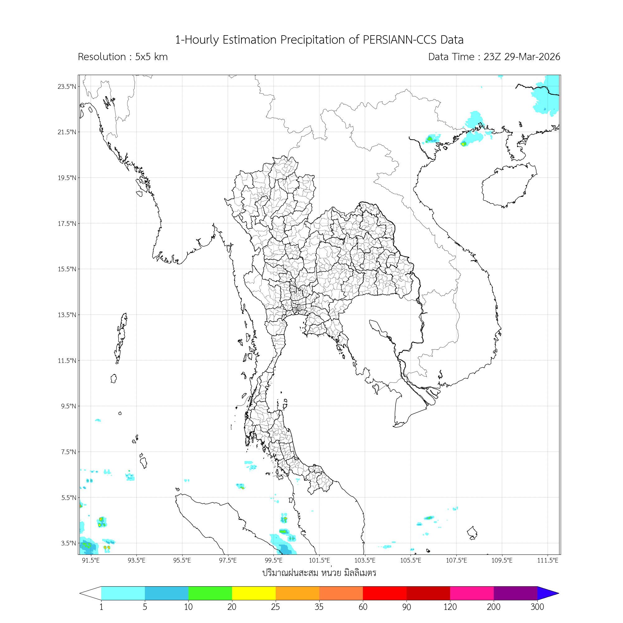 การประมาณค่าฝนจากดาวเทียม เมื่อวาน (29/03/2026)