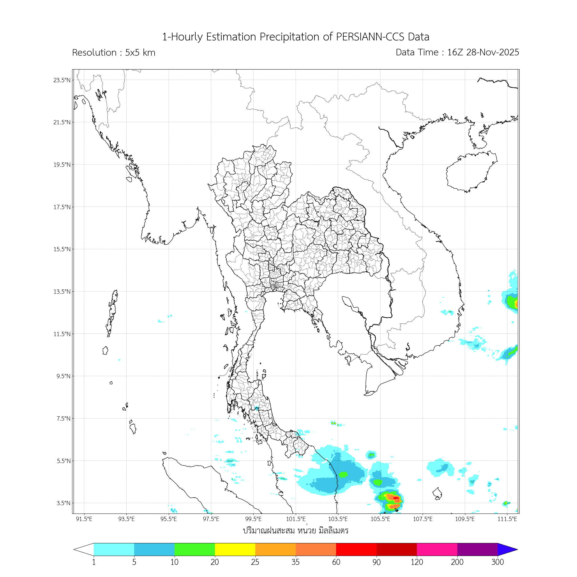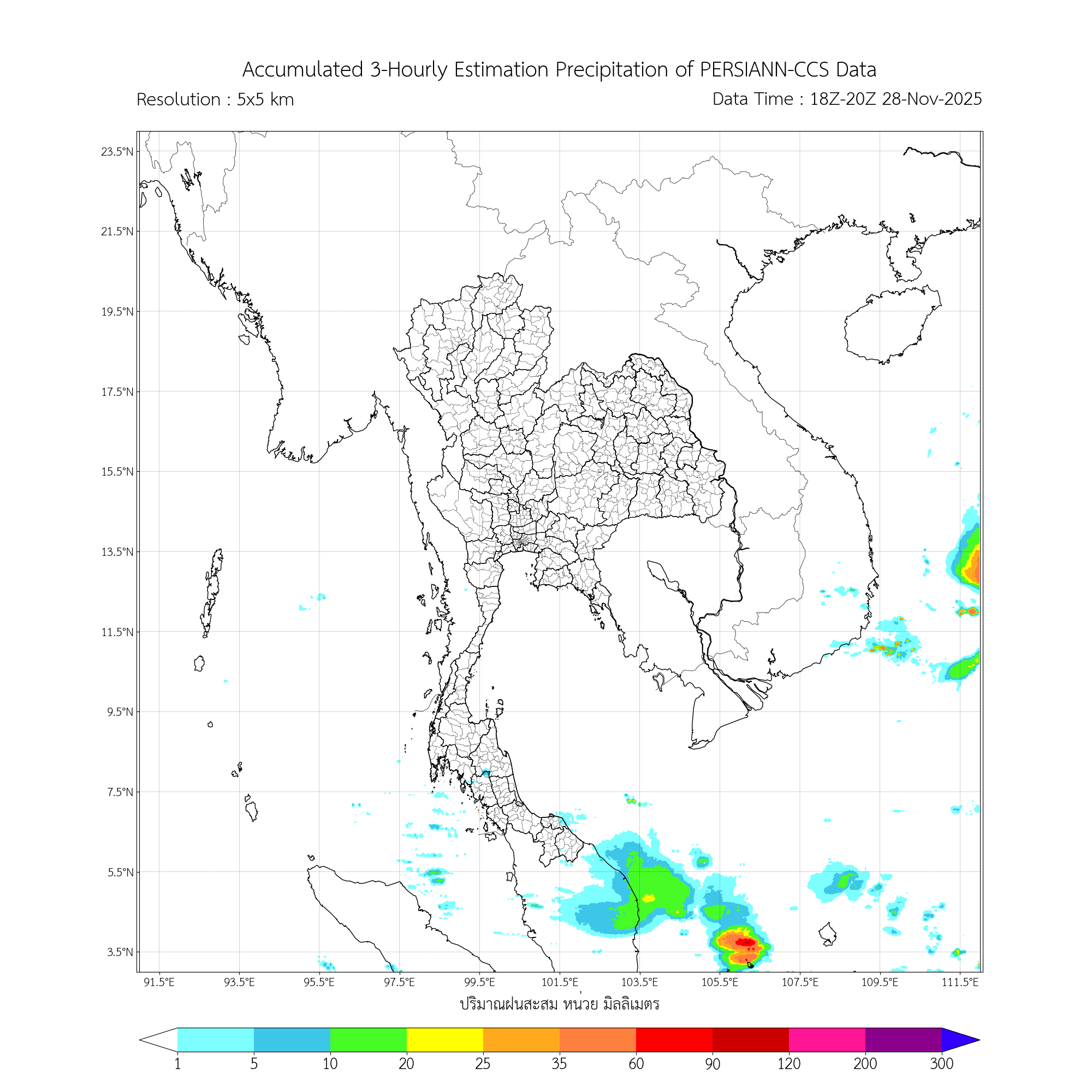 การประมาณค่าฝนจากดาวเทียม เมื่อวาน (28/11/2025)