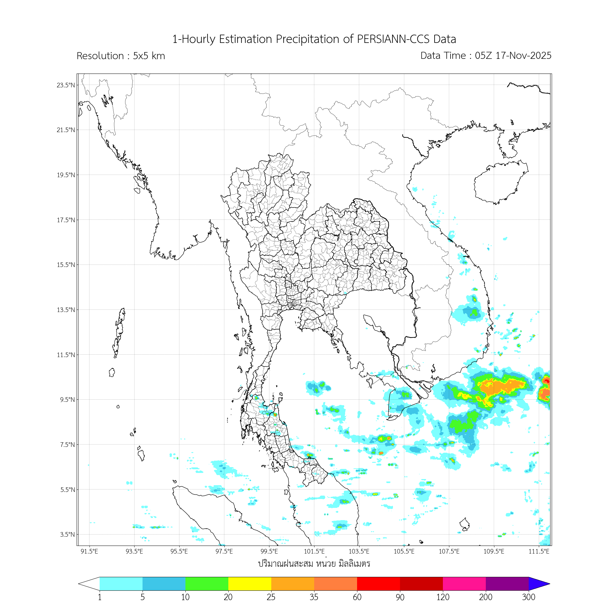 การประมาณค่าฝนจากดาวเทียม เมื่อวาน (16/11/2025)