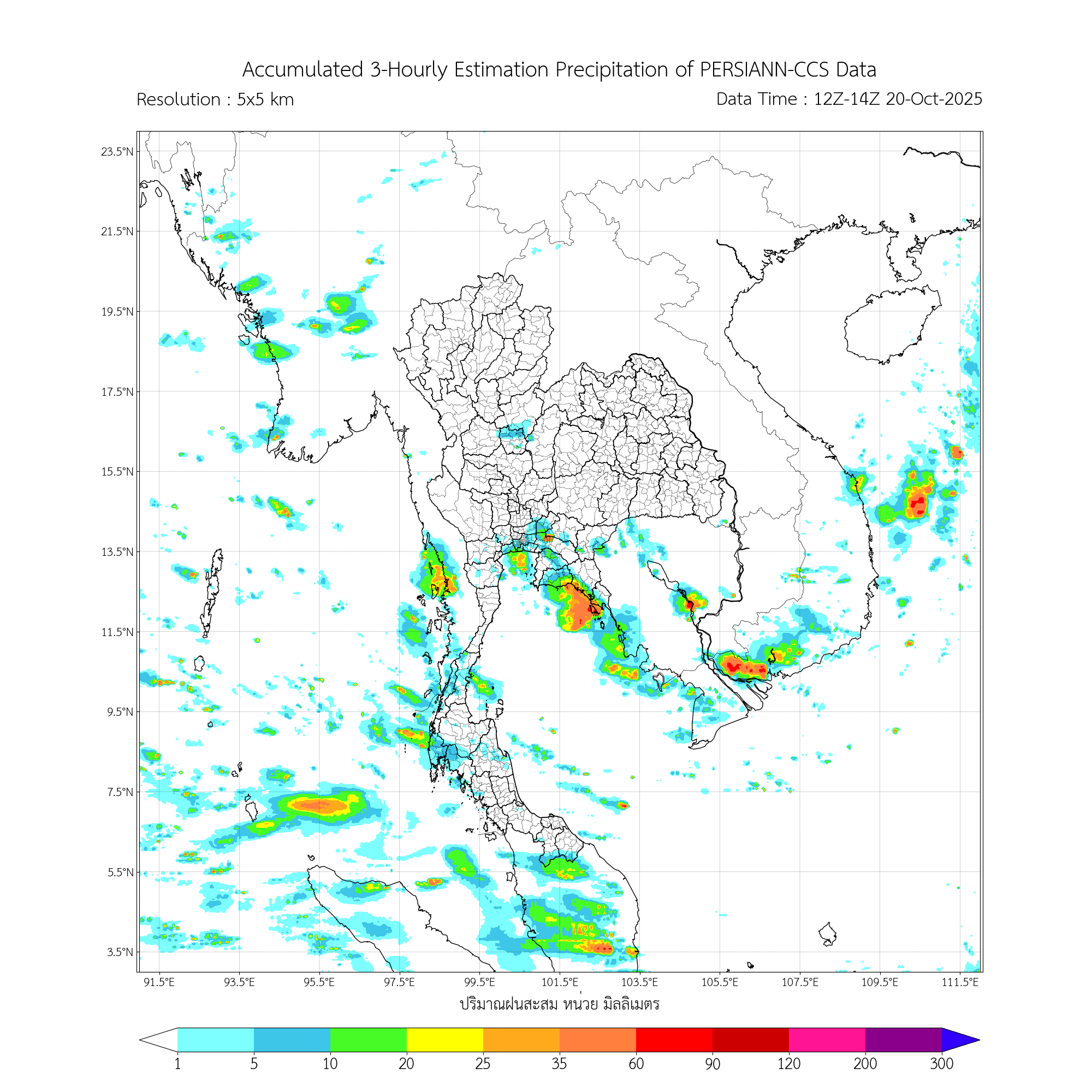 ค่าประมาณฝนสะสม 3 ชั่วโมง จากดาวเทียมอุตุนิยมวิทยา