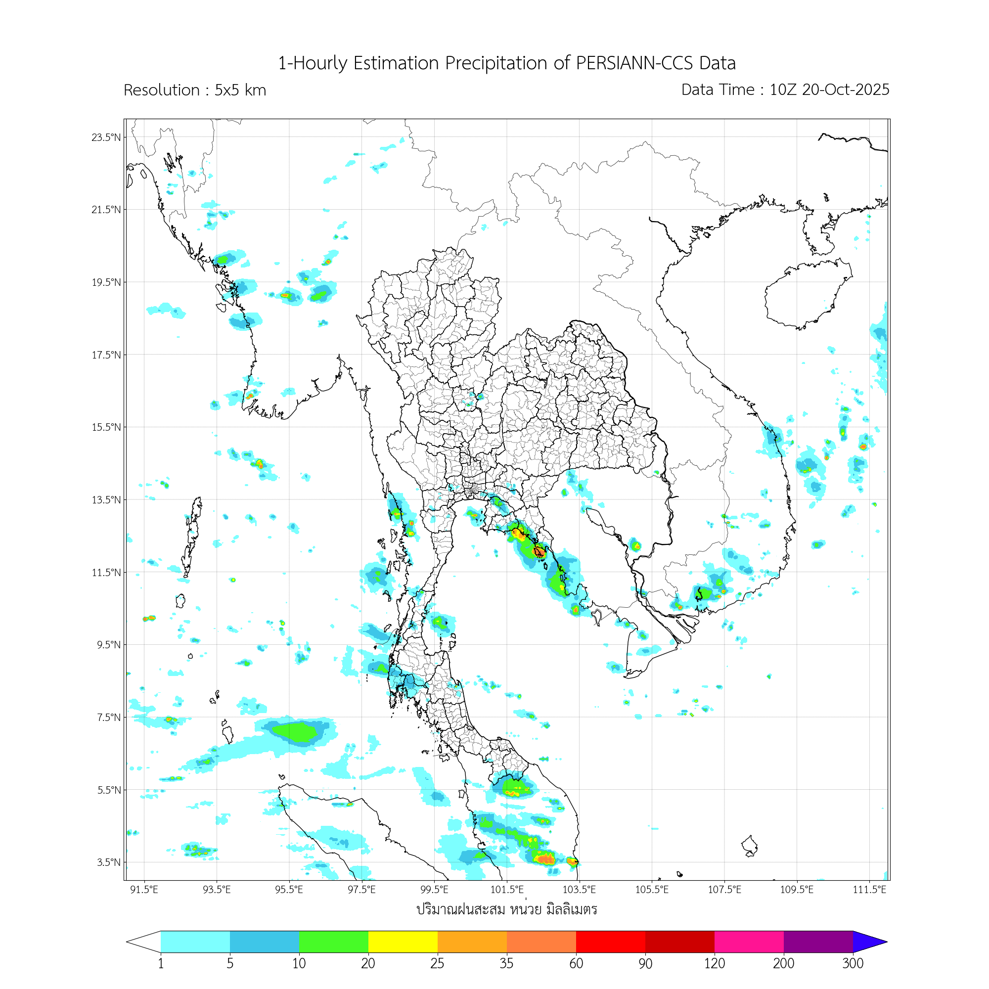 การประมาณค่าฝนจากดาวเทียม เมื่อวาน (19/10/2025)