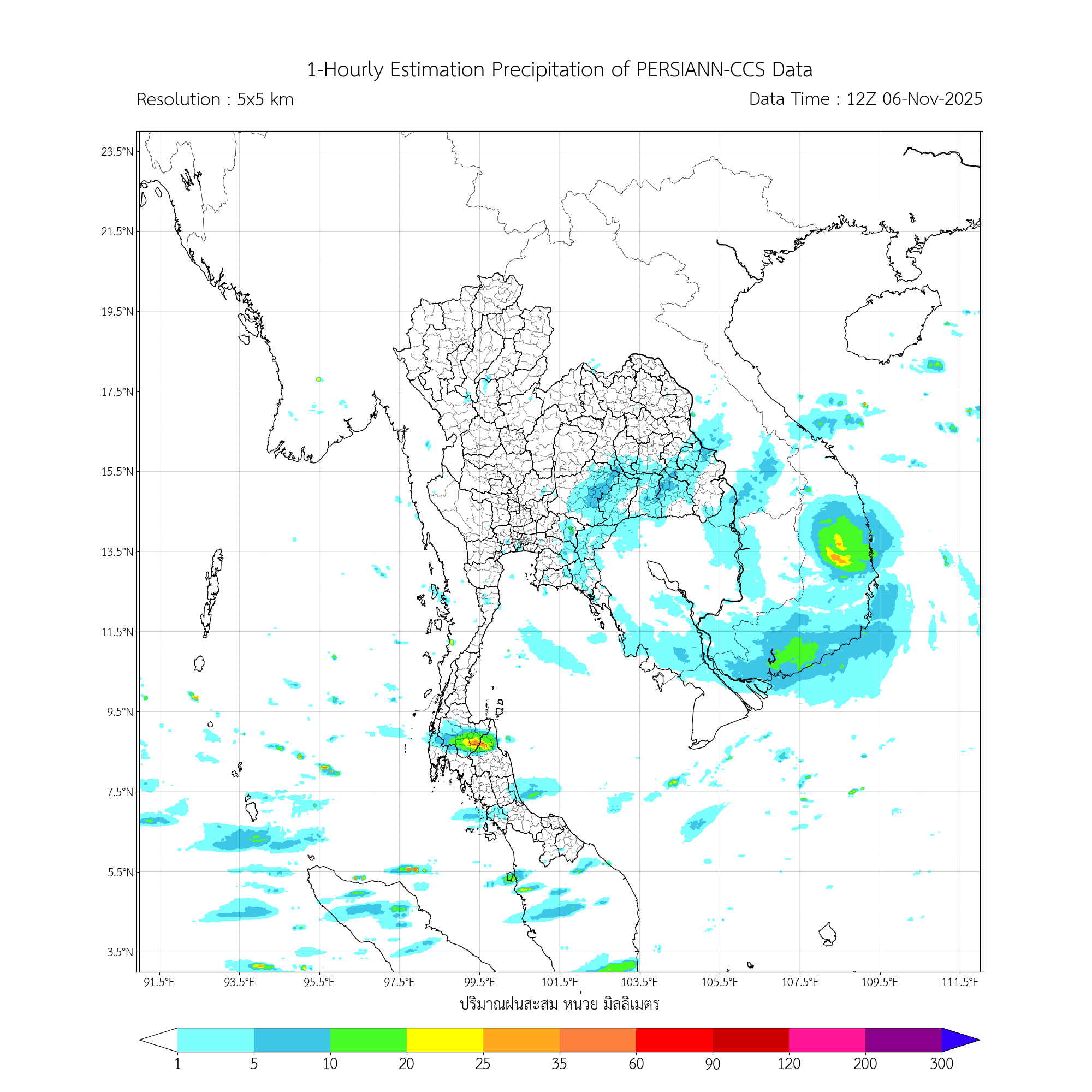 การประมาณค่าฝนจากดาวเทียม เมื่อวาน (05/11/2025)