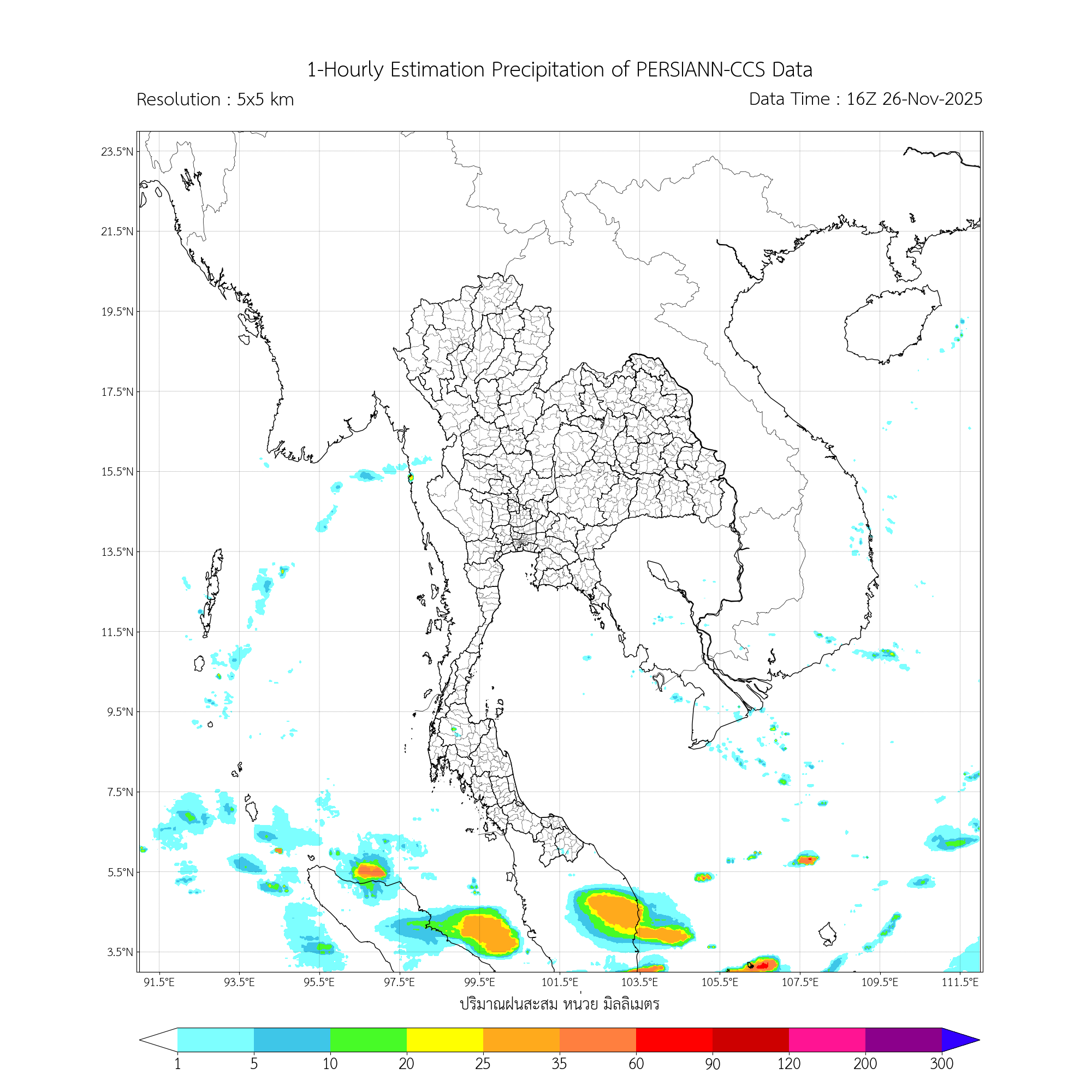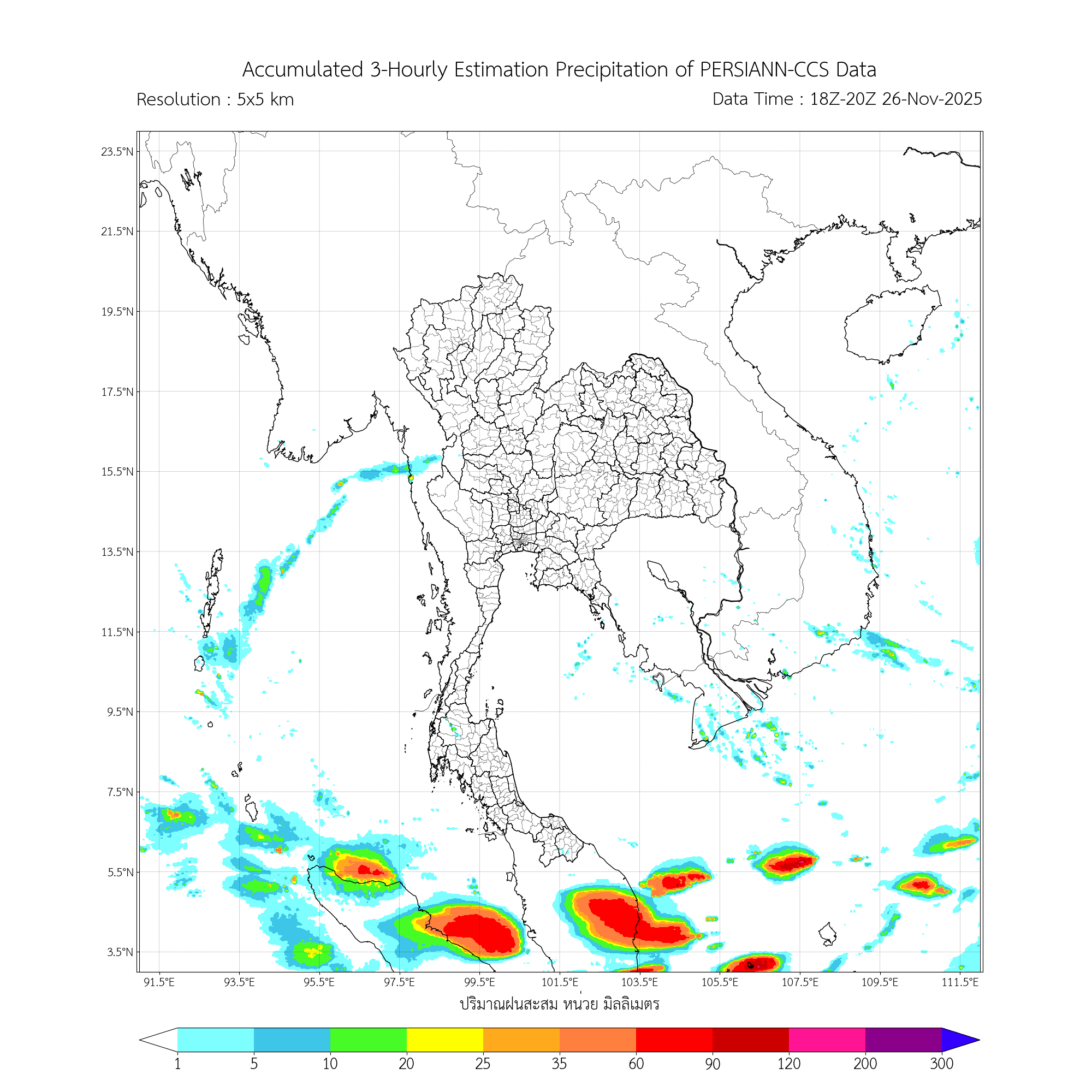 การประมาณค่าฝนจากดาวเทียม เมื่อวาน (26/11/2025)