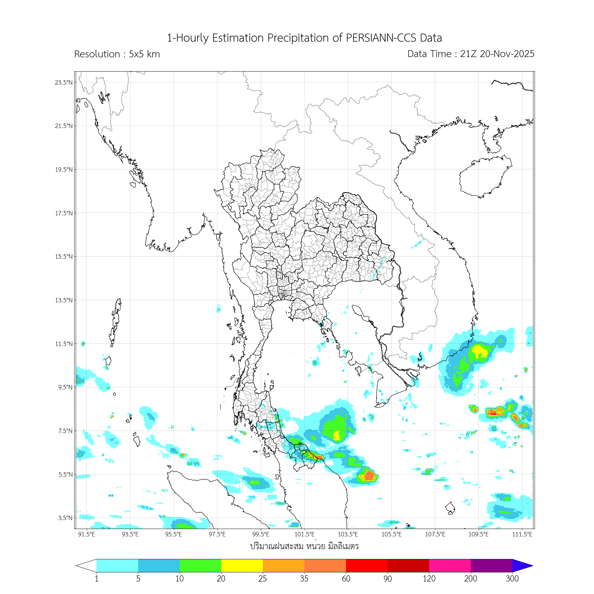 การประมาณค่าฝนจากดาวเทียม เมื่อวาน (20/11/2025)