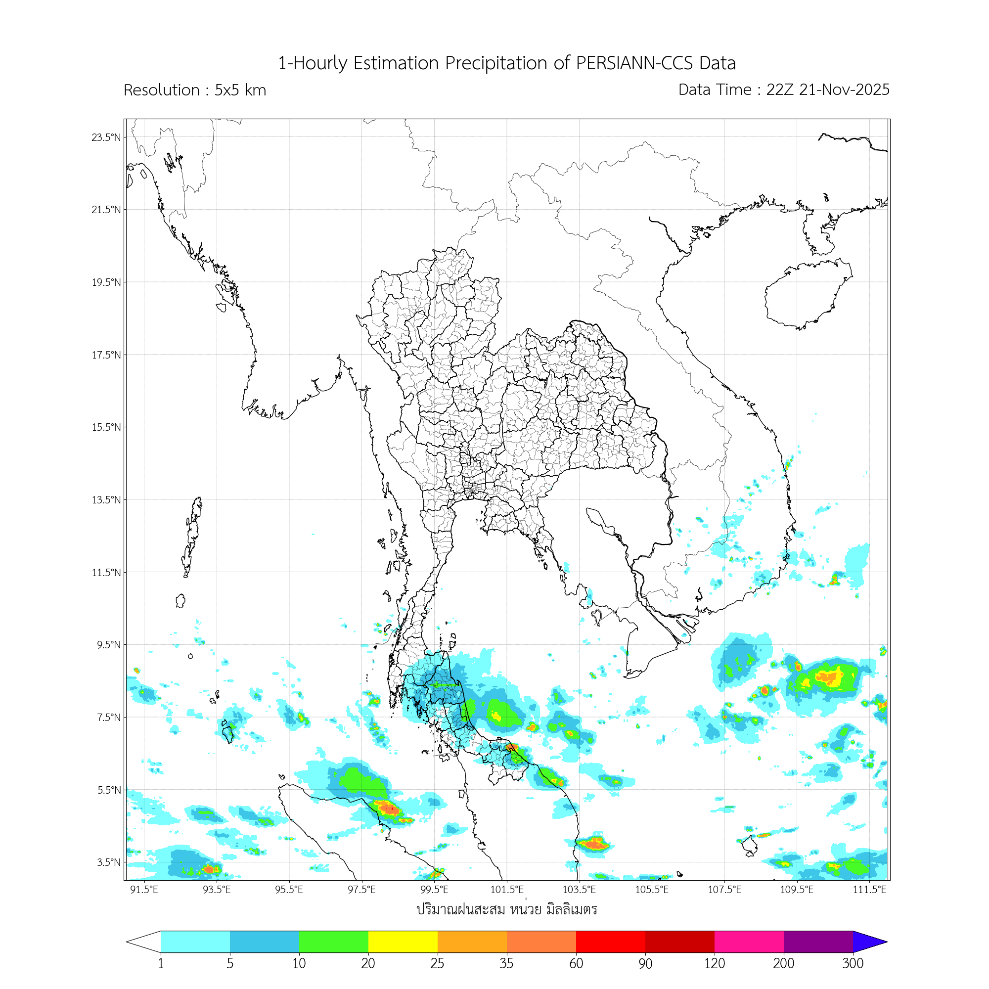 การประมาณค่าฝนจากดาวเทียม เมื่อวาน (21/11/2025)
