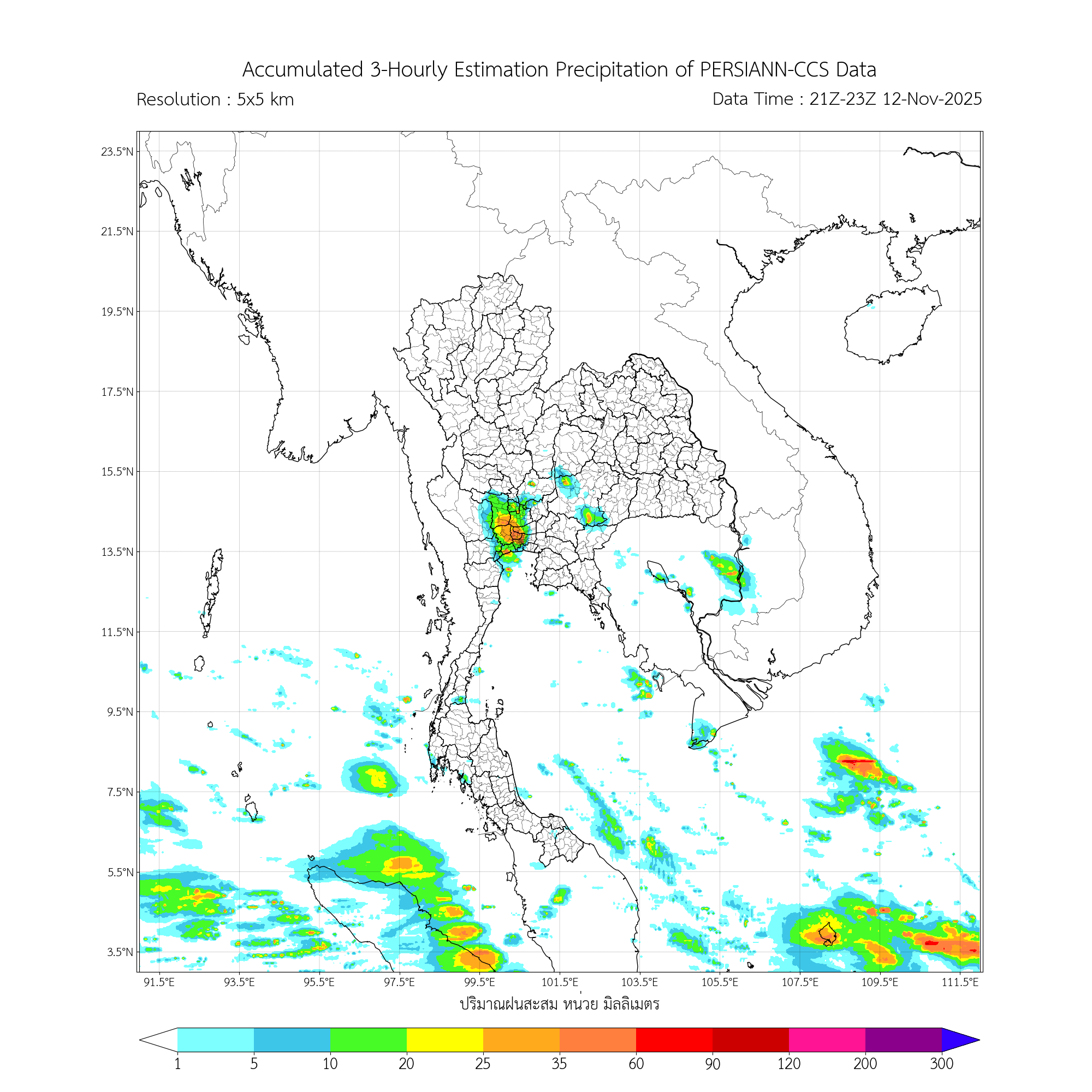 การประมาณค่าฝนจากดาวเทียม เมื่อวาน (12/11/2025)