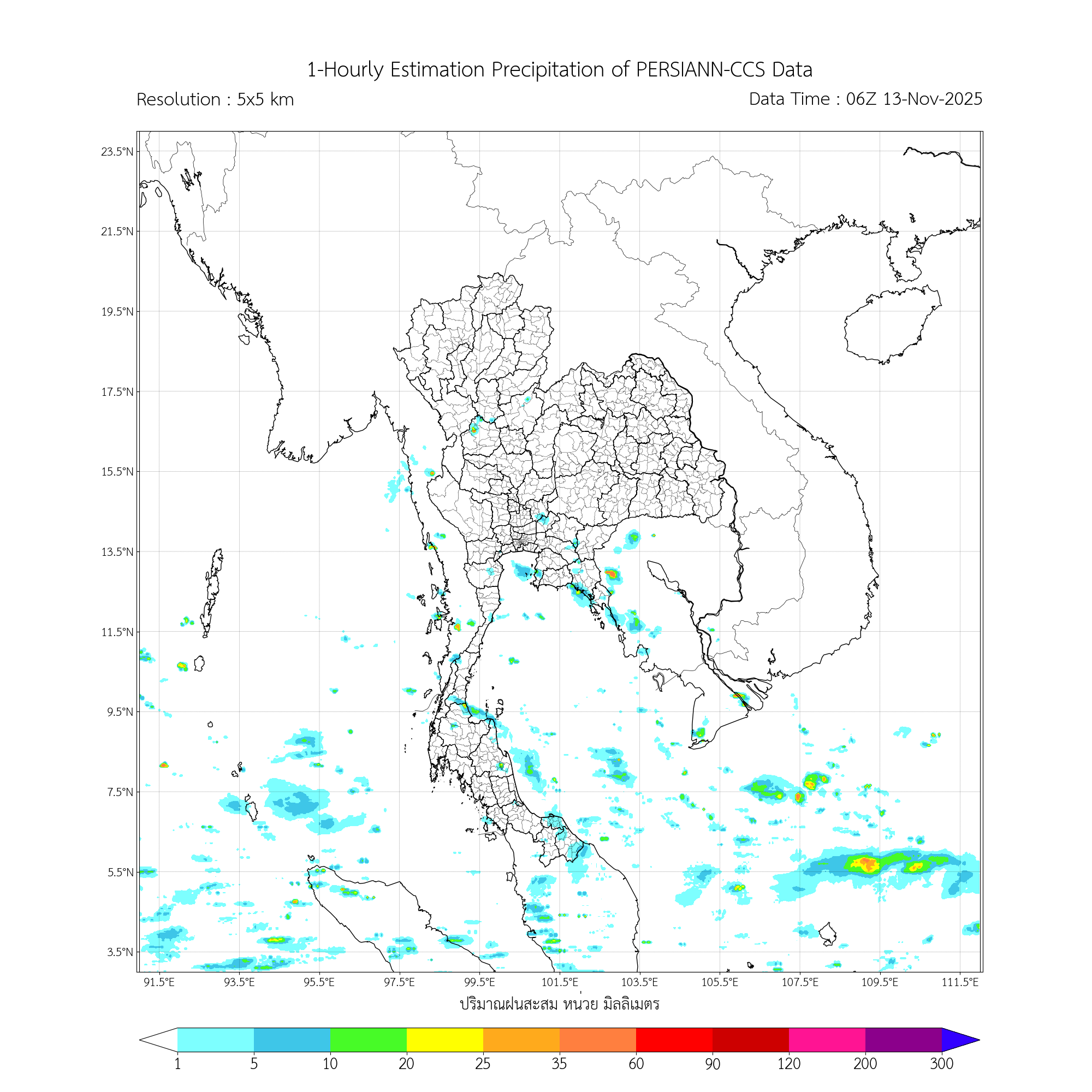 ค่าประมาณฝนสะสม 3 ชั่วโมง จากดาวเทียมอุตุนิยมวิทยา