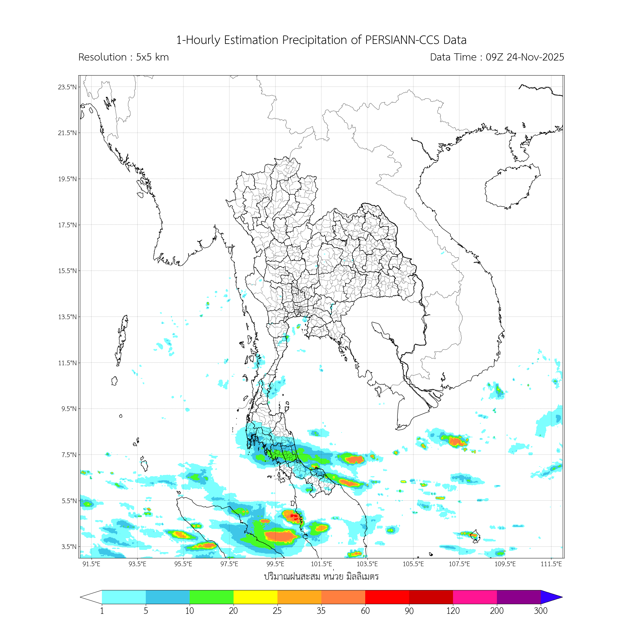 การประมาณค่าฝนจากดาวเทียม เมื่อวาน (23/11/2025)