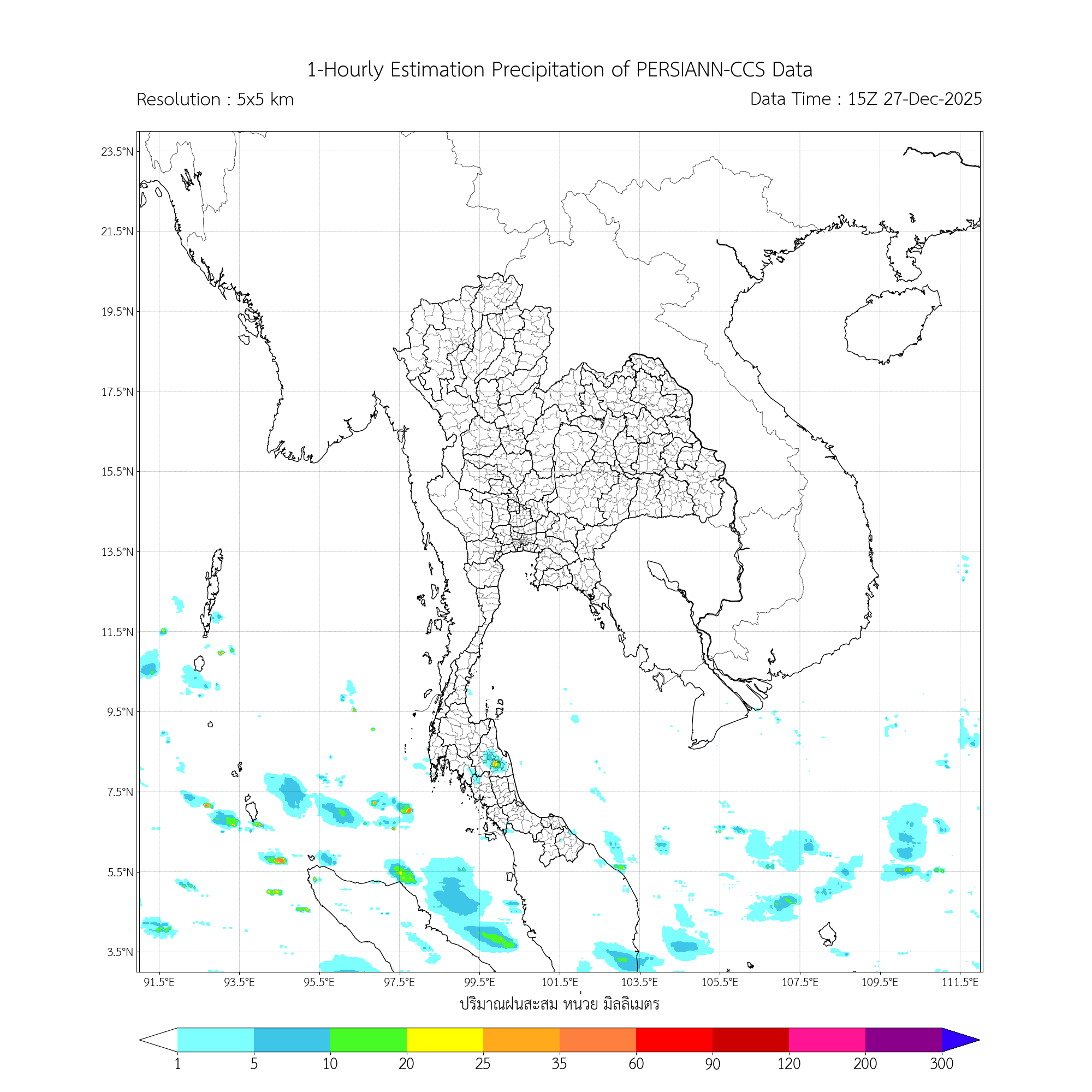 การประมาณค่าฝนจากดาวเทียม เมื่อวาน (27/12/2025)