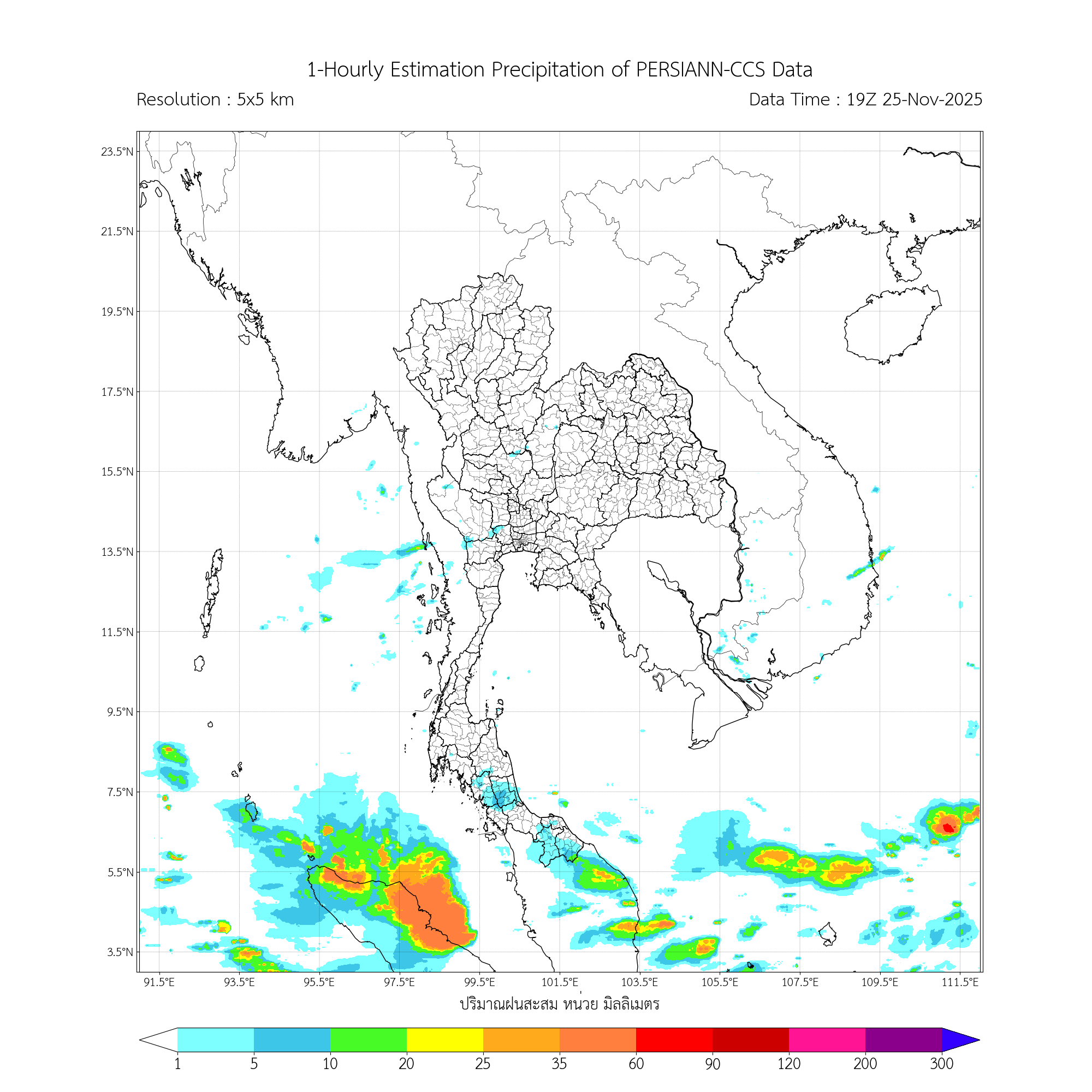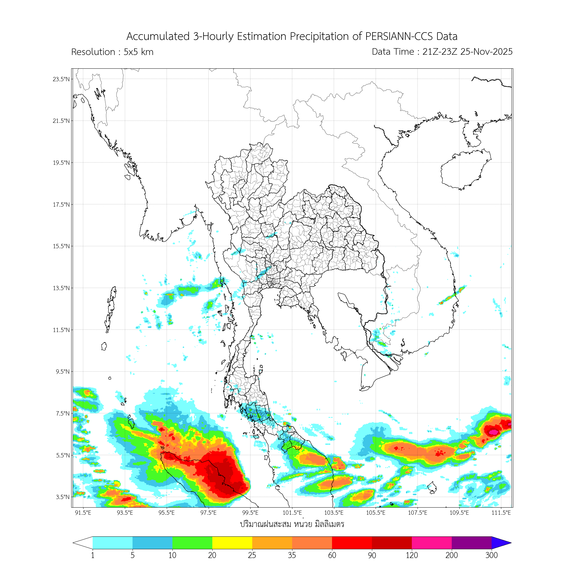 การประมาณค่าฝนจากดาวเทียม เมื่อวาน (25/11/2025)