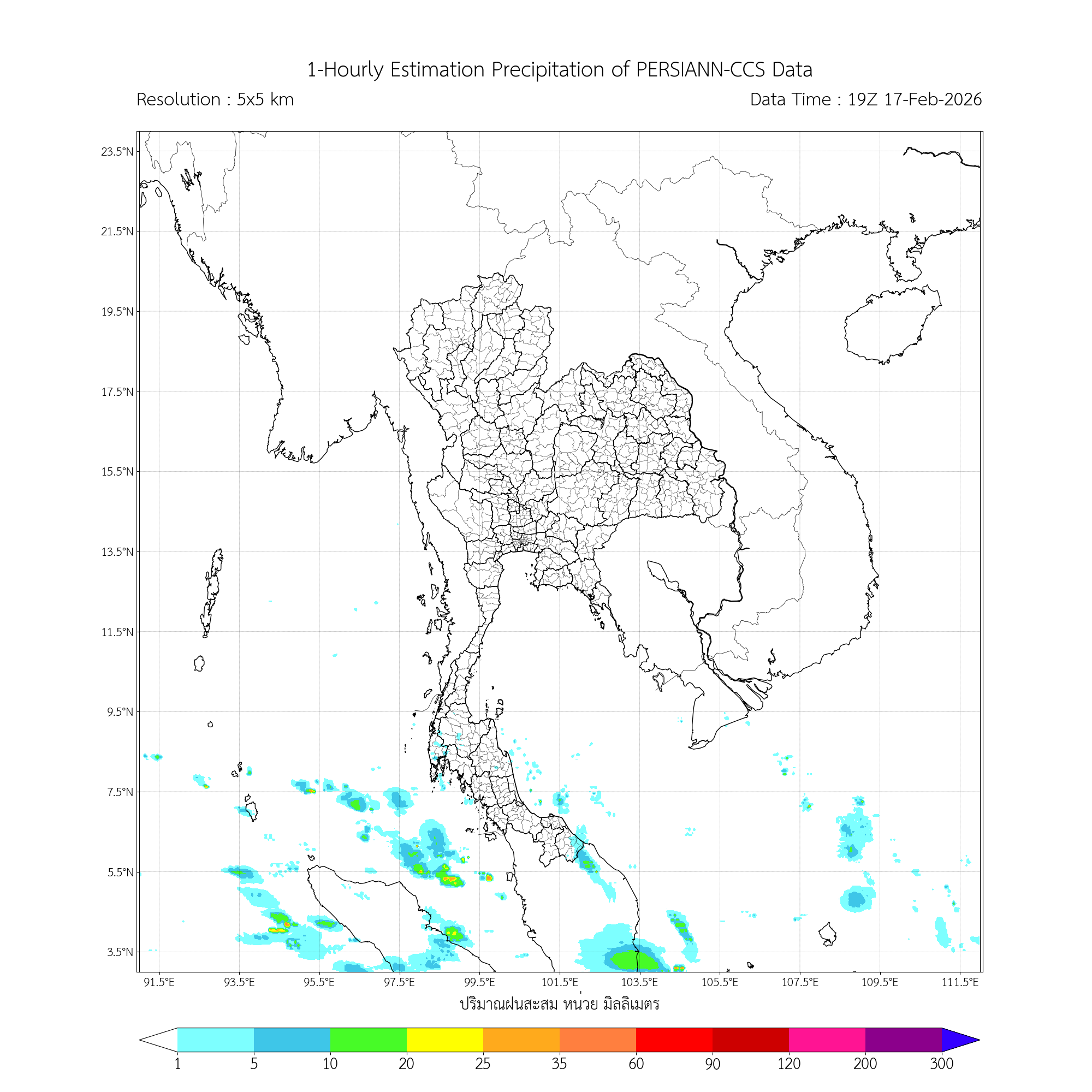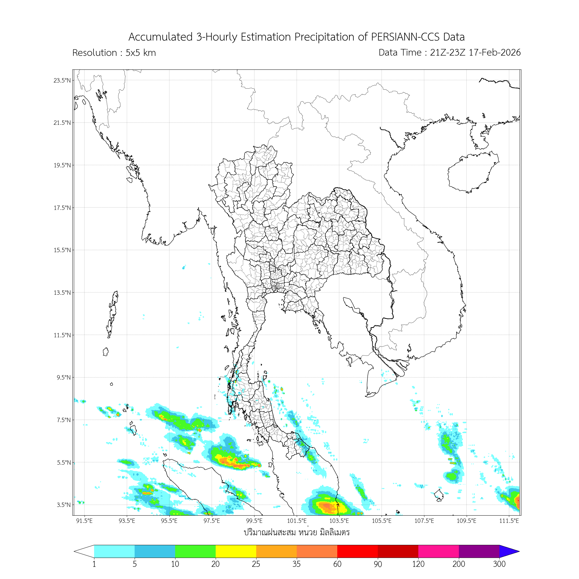 การประมาณค่าฝนจากดาวเทียม เมื่อวาน (17/02/2026)
