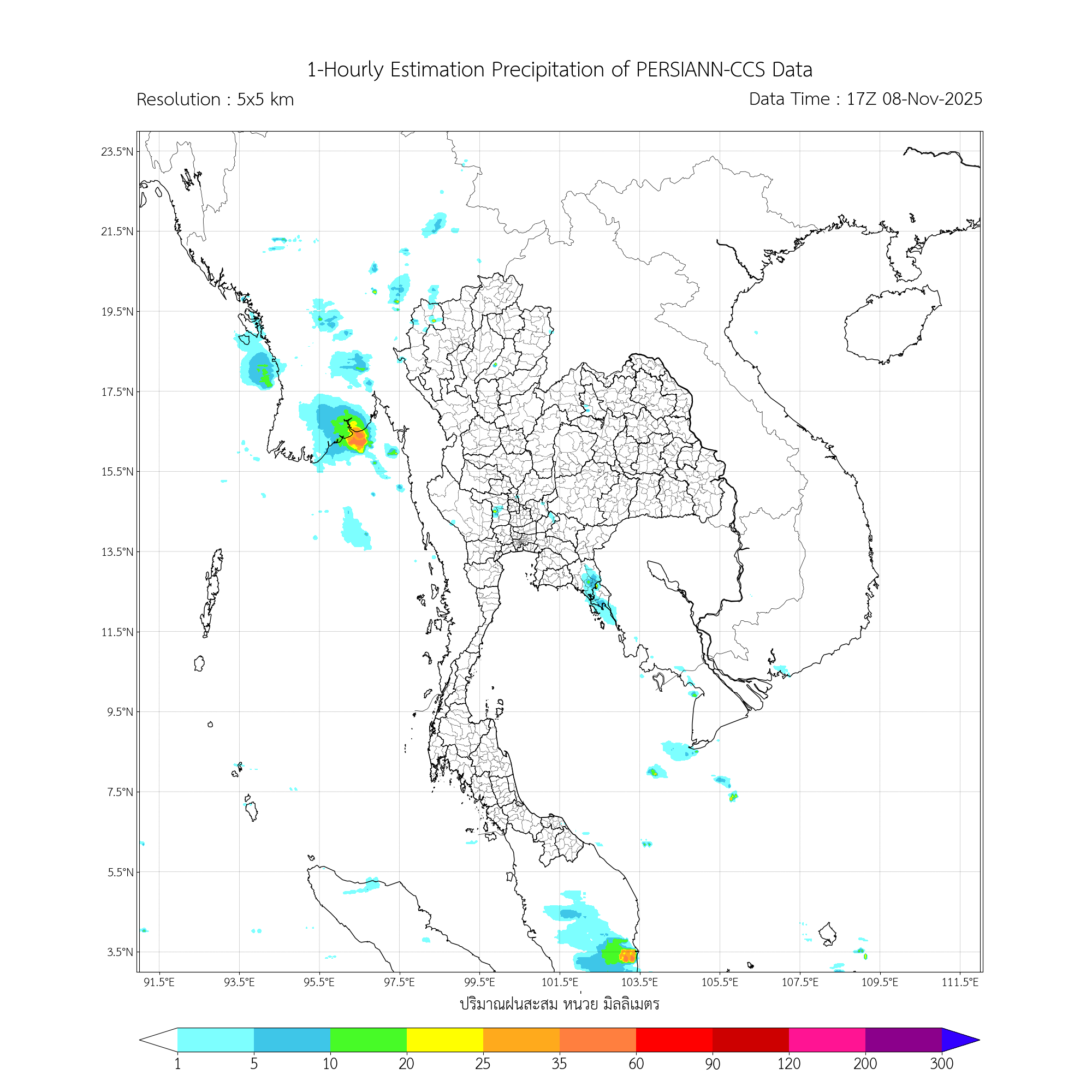 การประมาณค่าฝนจากดาวเทียม เมื่อวาน (08/11/2025)
