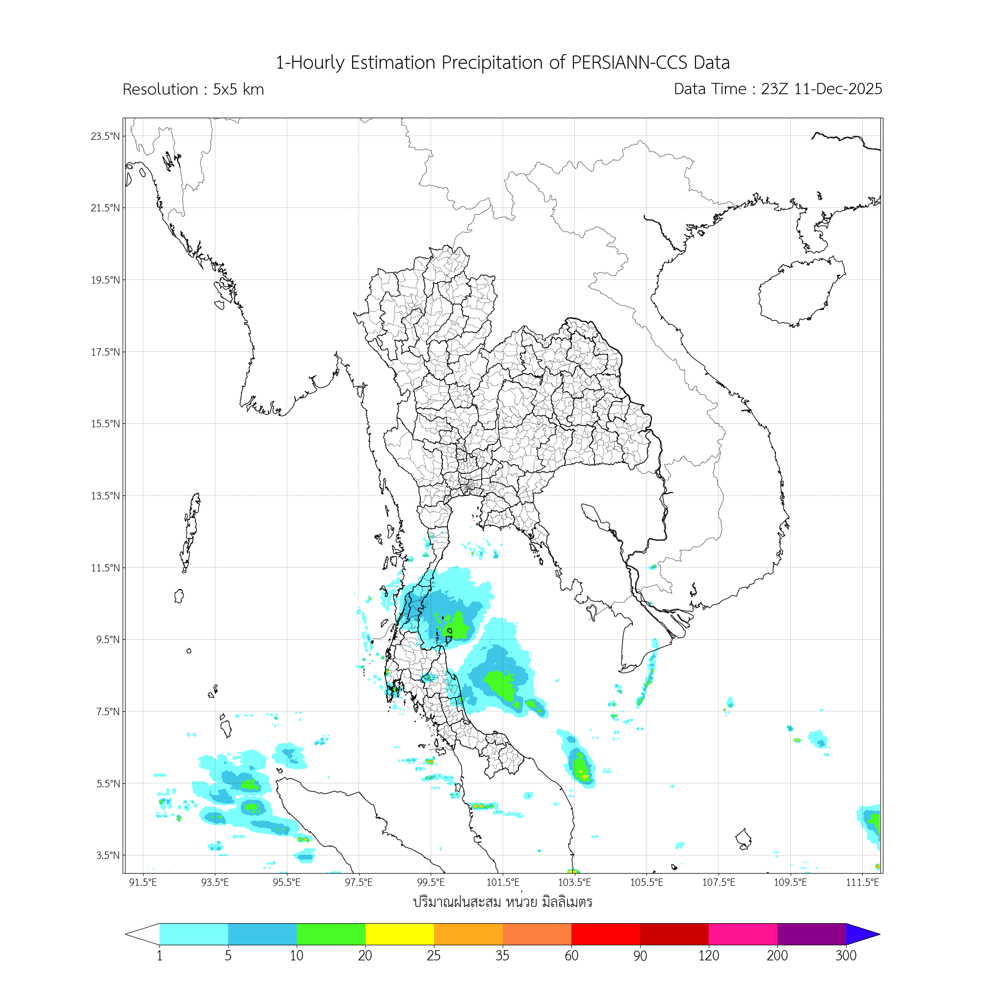 การประมาณค่าฝนจากดาวเทียม เมื่อวาน (11/12/2025)