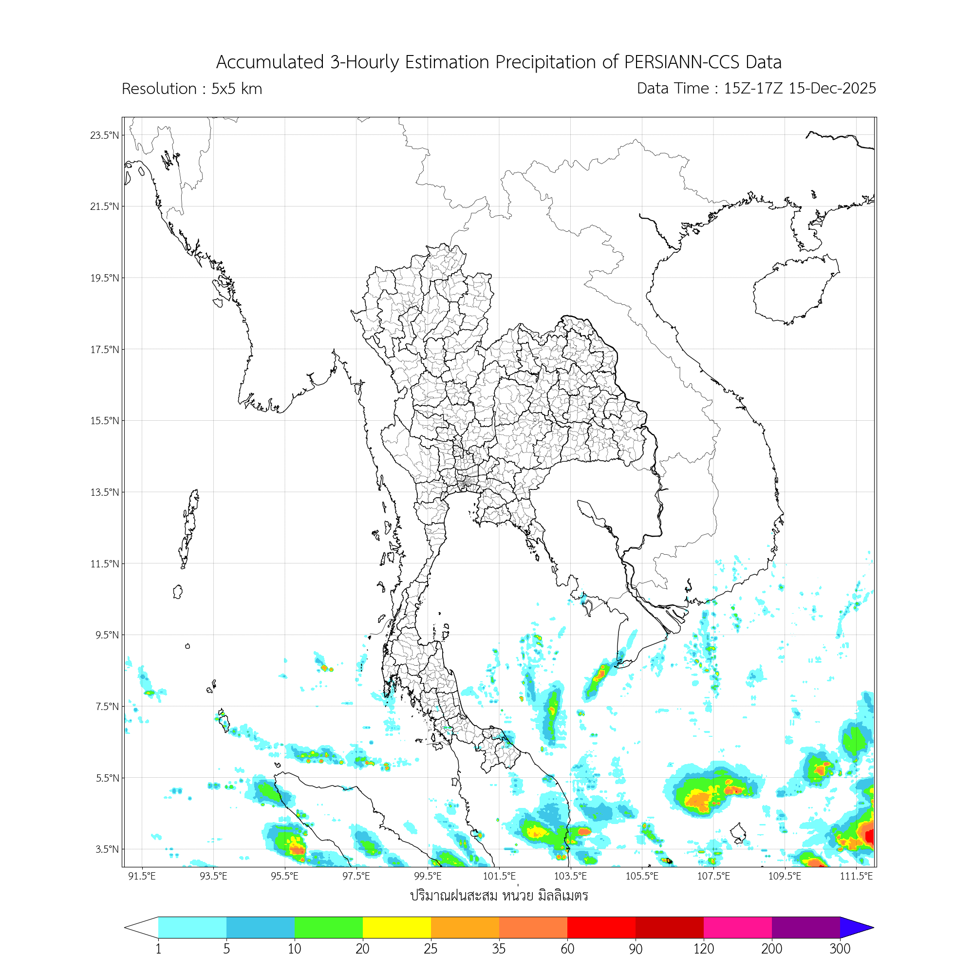 ค่าประมาณฝนสะสม 3 ชั่วโมง จากดาวเทียมอุตุนิยมวิทยา