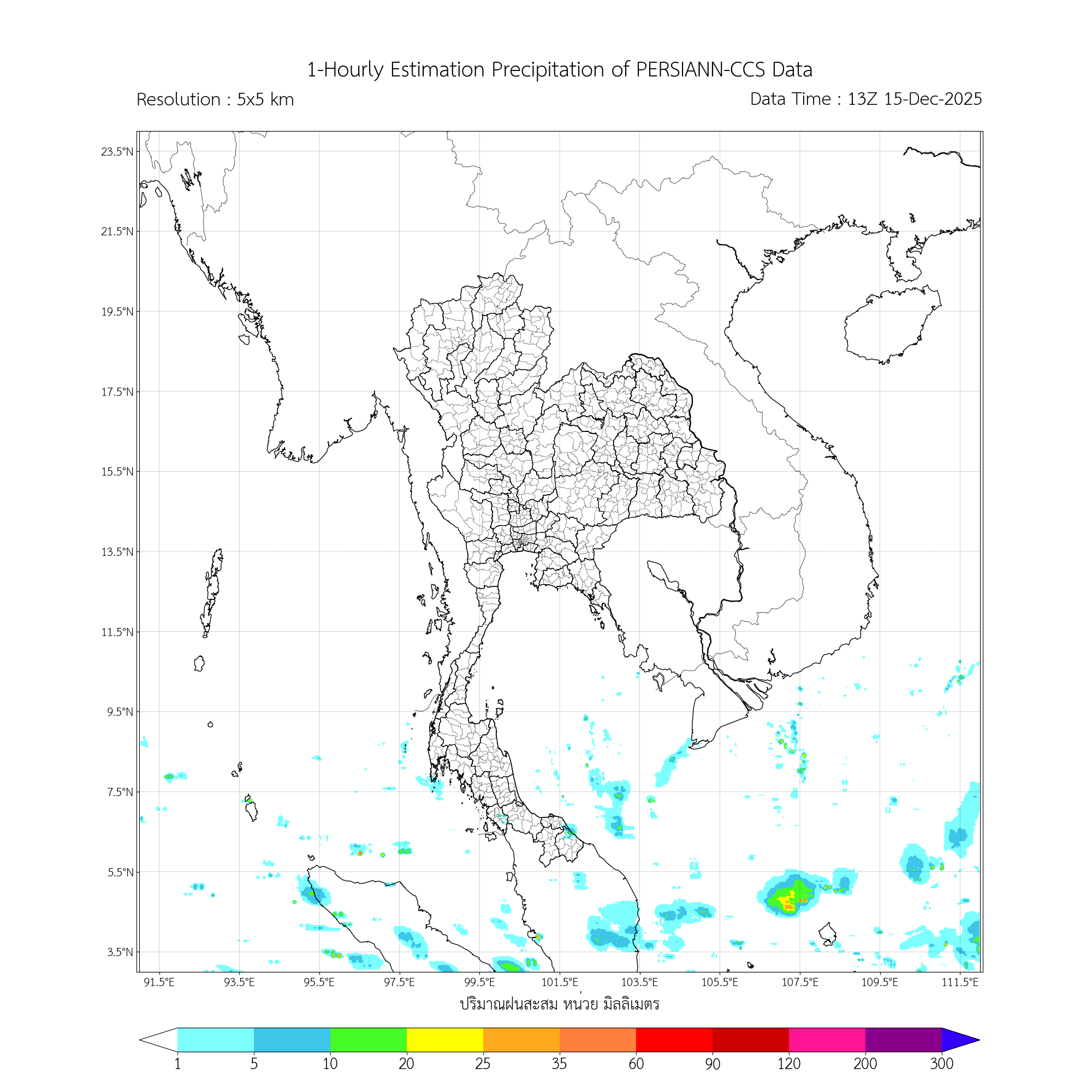 การประมาณค่าฝนจากดาวเทียม เมื่อวาน (14/12/2025)