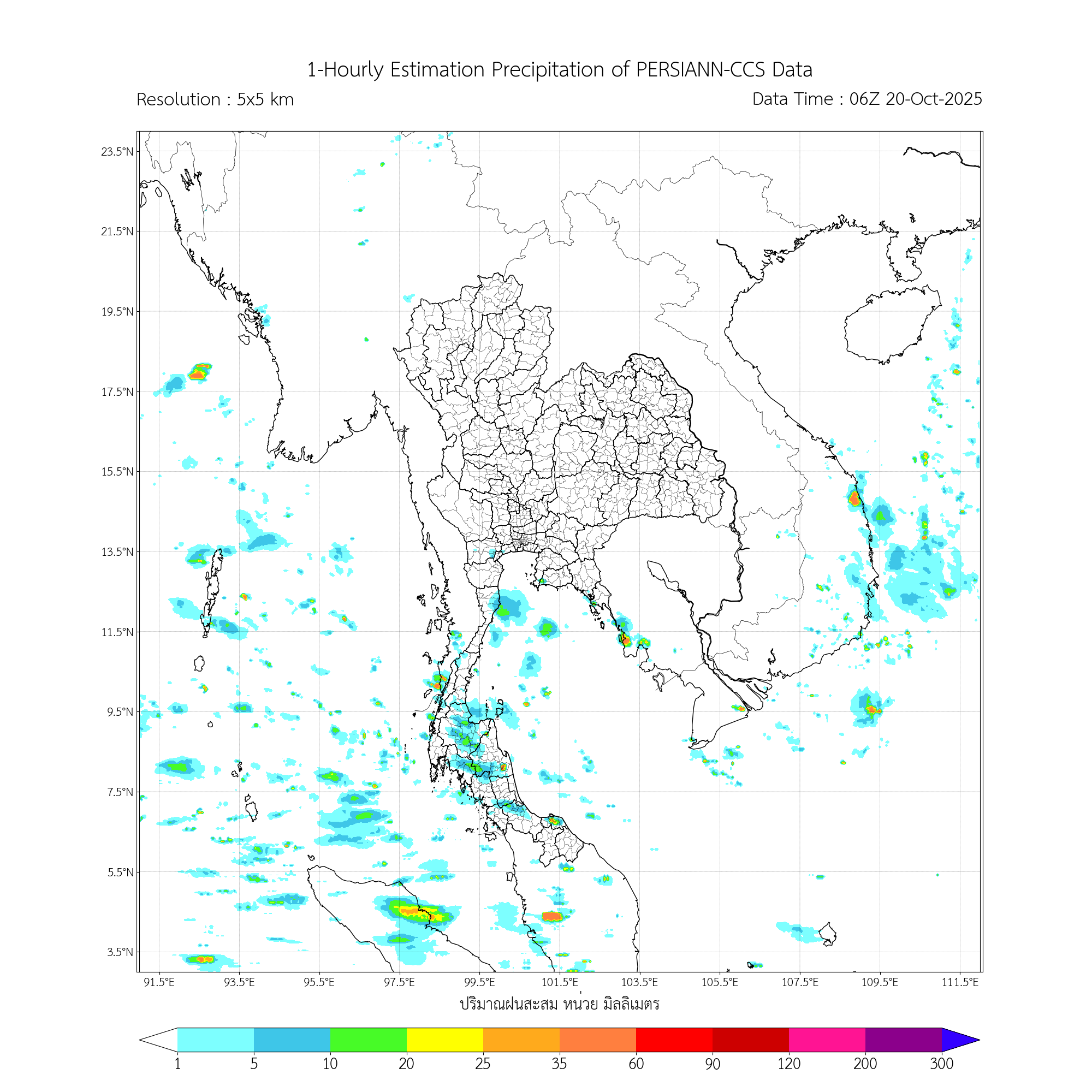 การประมาณค่าฝนจากดาวเทียม เมื่อวาน (19/10/2025)