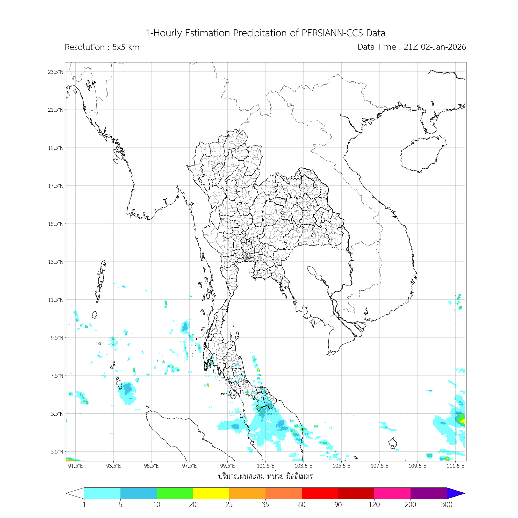 การประมาณค่าฝนจากดาวเทียม เมื่อวาน (02/01/2026)