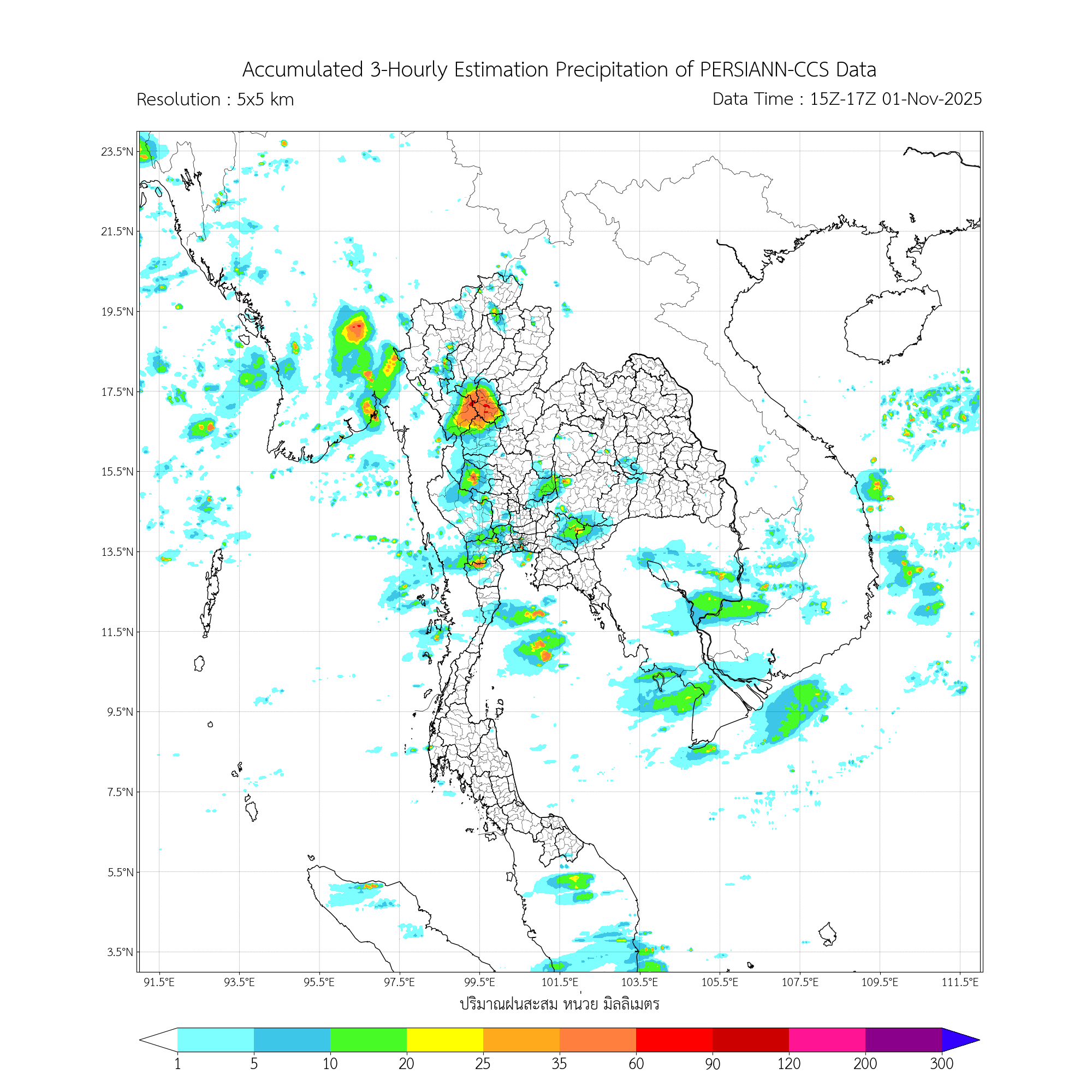 ค่าประมาณฝนสะสม 3 ชั่วโมง จากดาวเทียมอุตุนิยมวิทยา