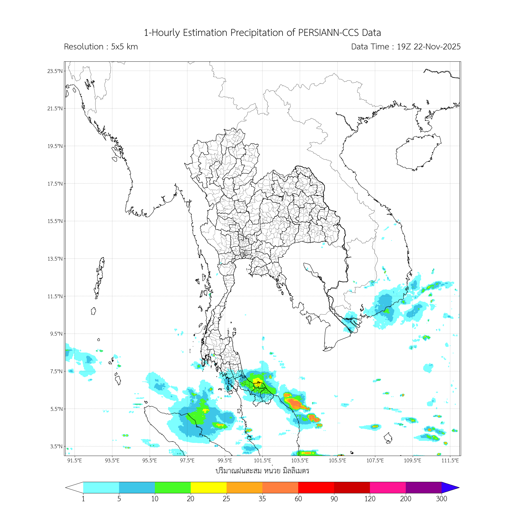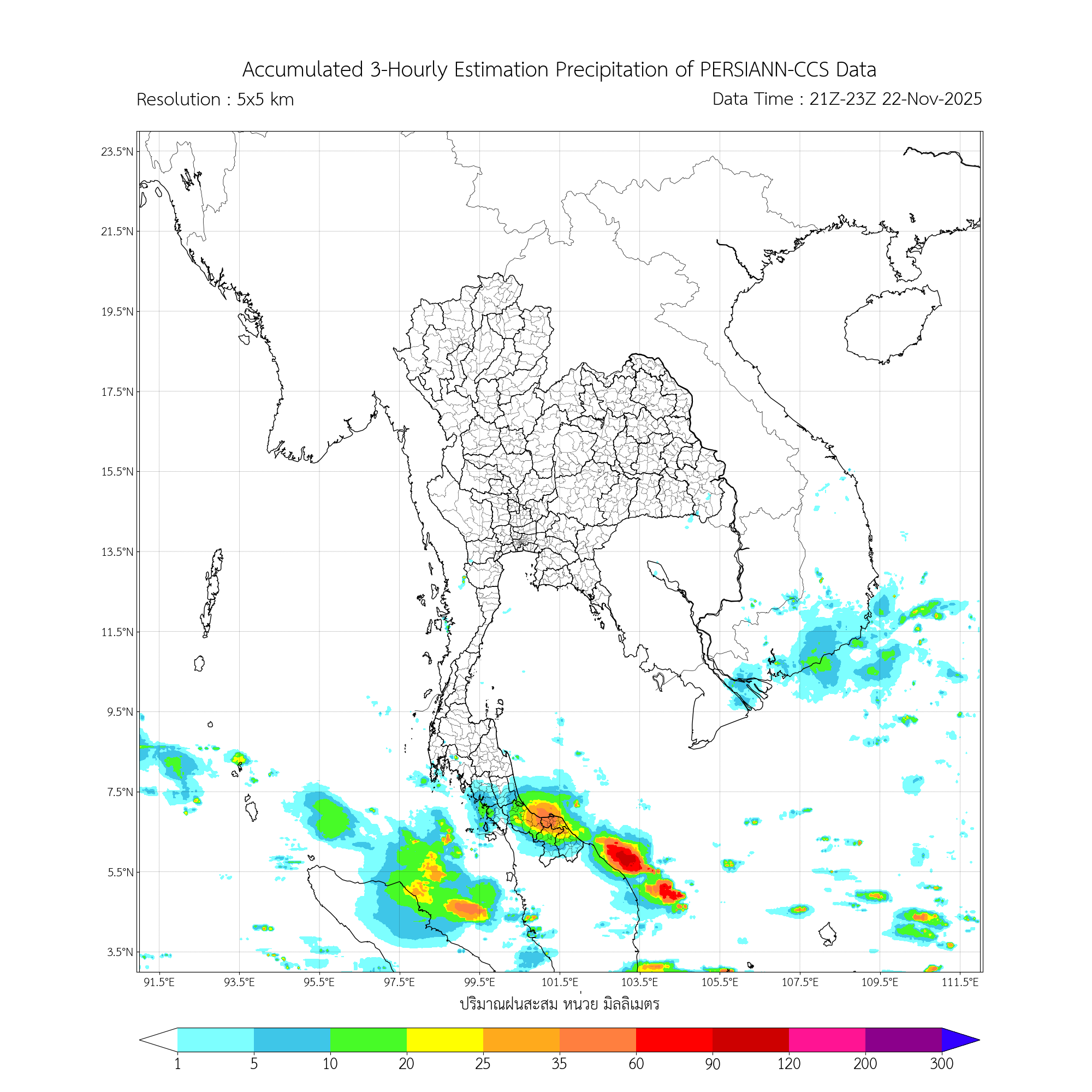 การประมาณค่าฝนจากดาวเทียม เมื่อวาน (22/11/2025)