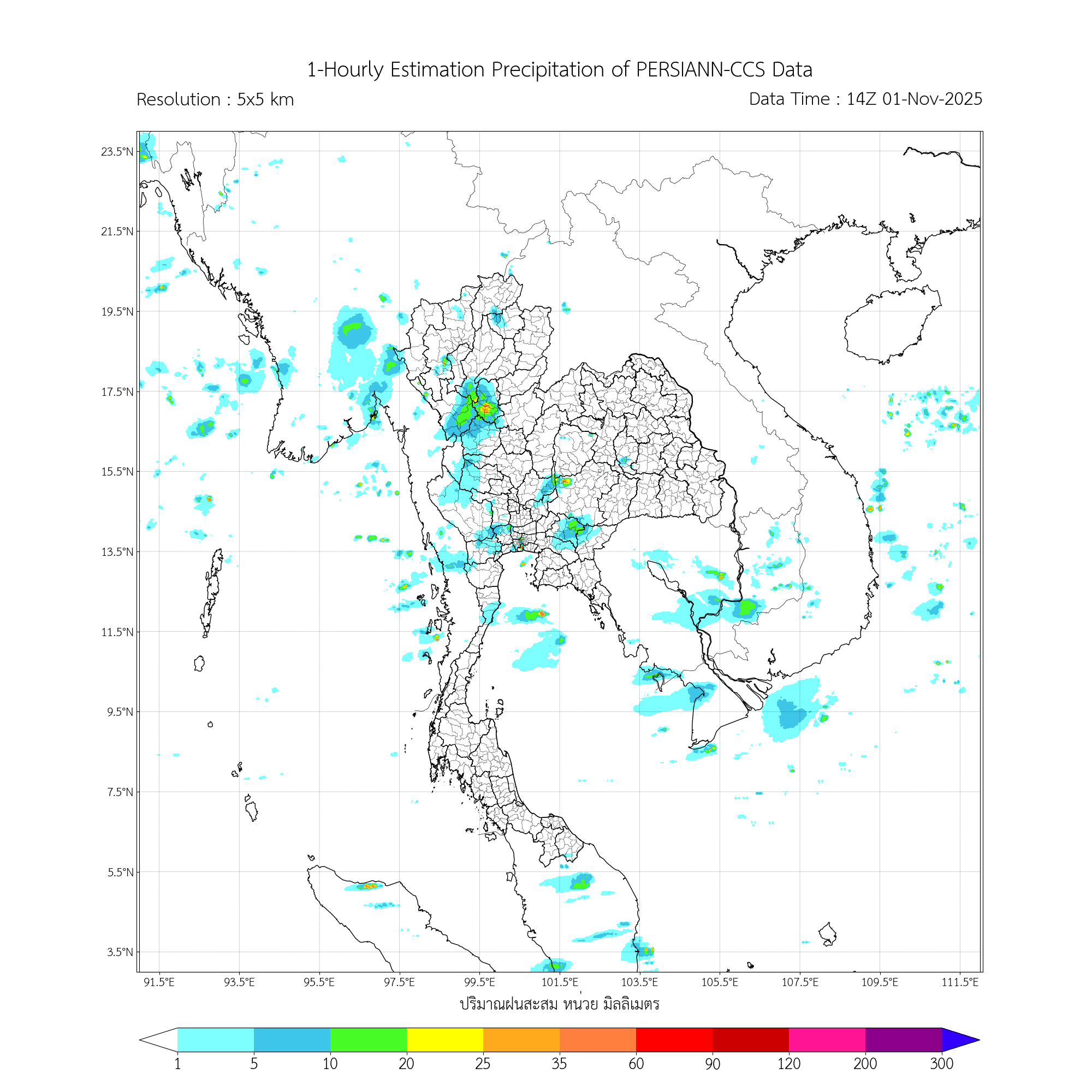 ปริมาณค่าฝนรายชั่วโมงจากการประมาณค่าฝนด้วยดาวเทียมอุตุนิยมวิทยา