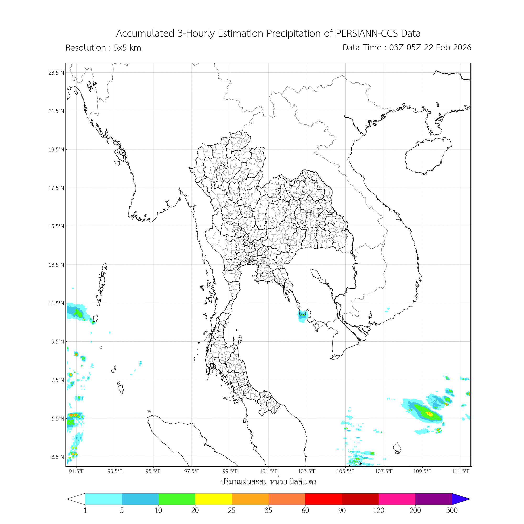 การประมาณค่าฝนจากดาวเทียม เมื่อวาน (21/02/2026)