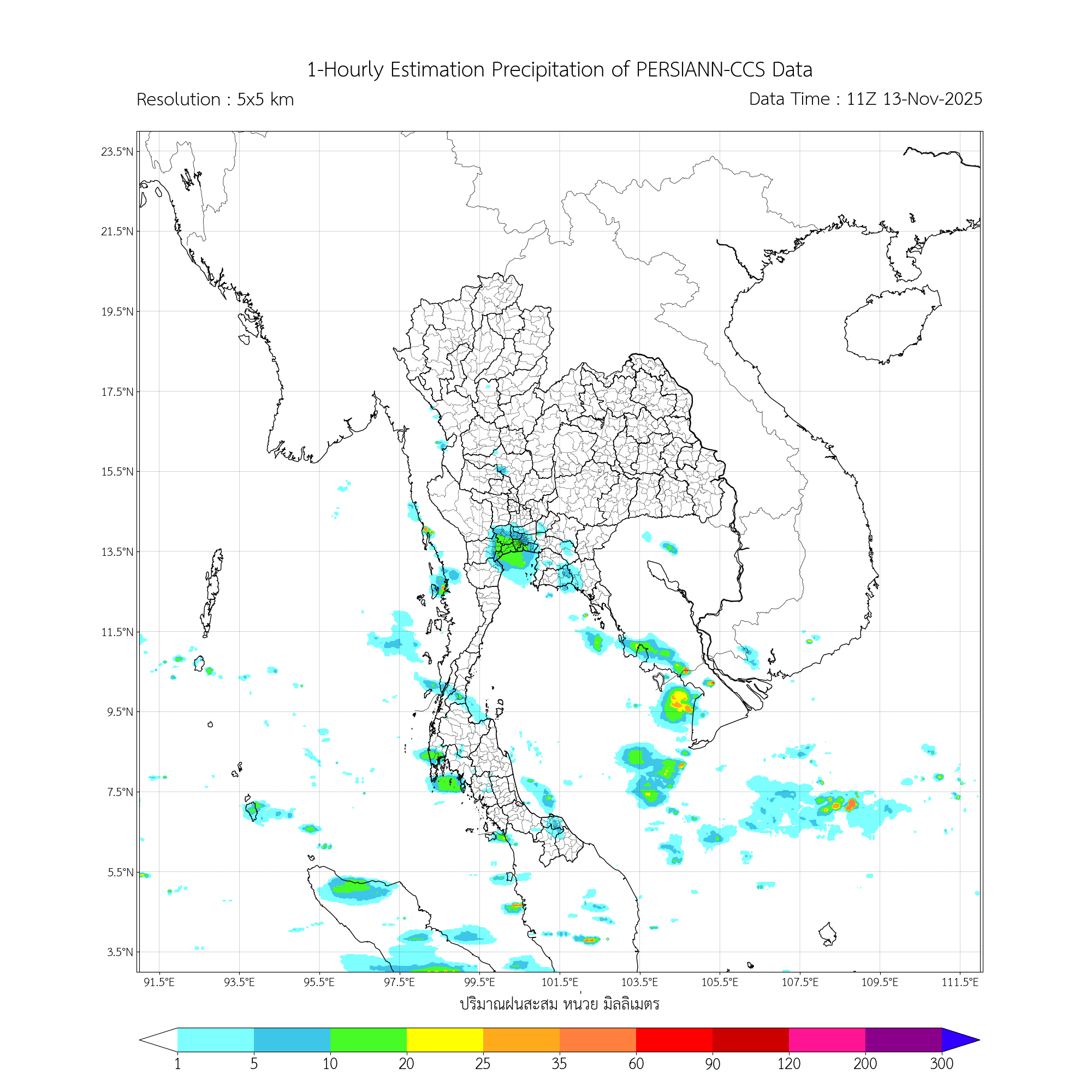 การประมาณค่าฝนจากดาวเทียม เมื่อวาน (12/11/2025)