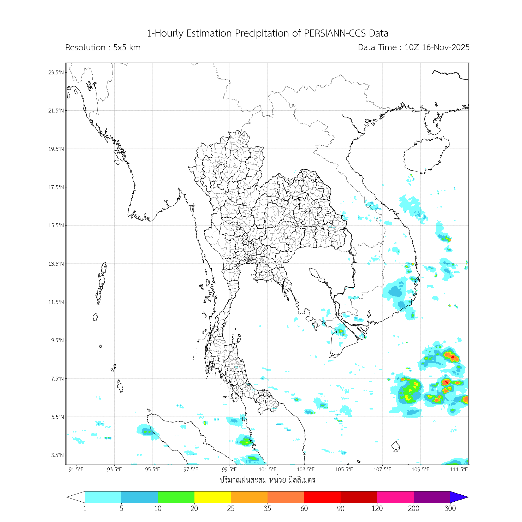 การประมาณค่าฝนจากดาวเทียม เมื่อวาน (15/11/2025)