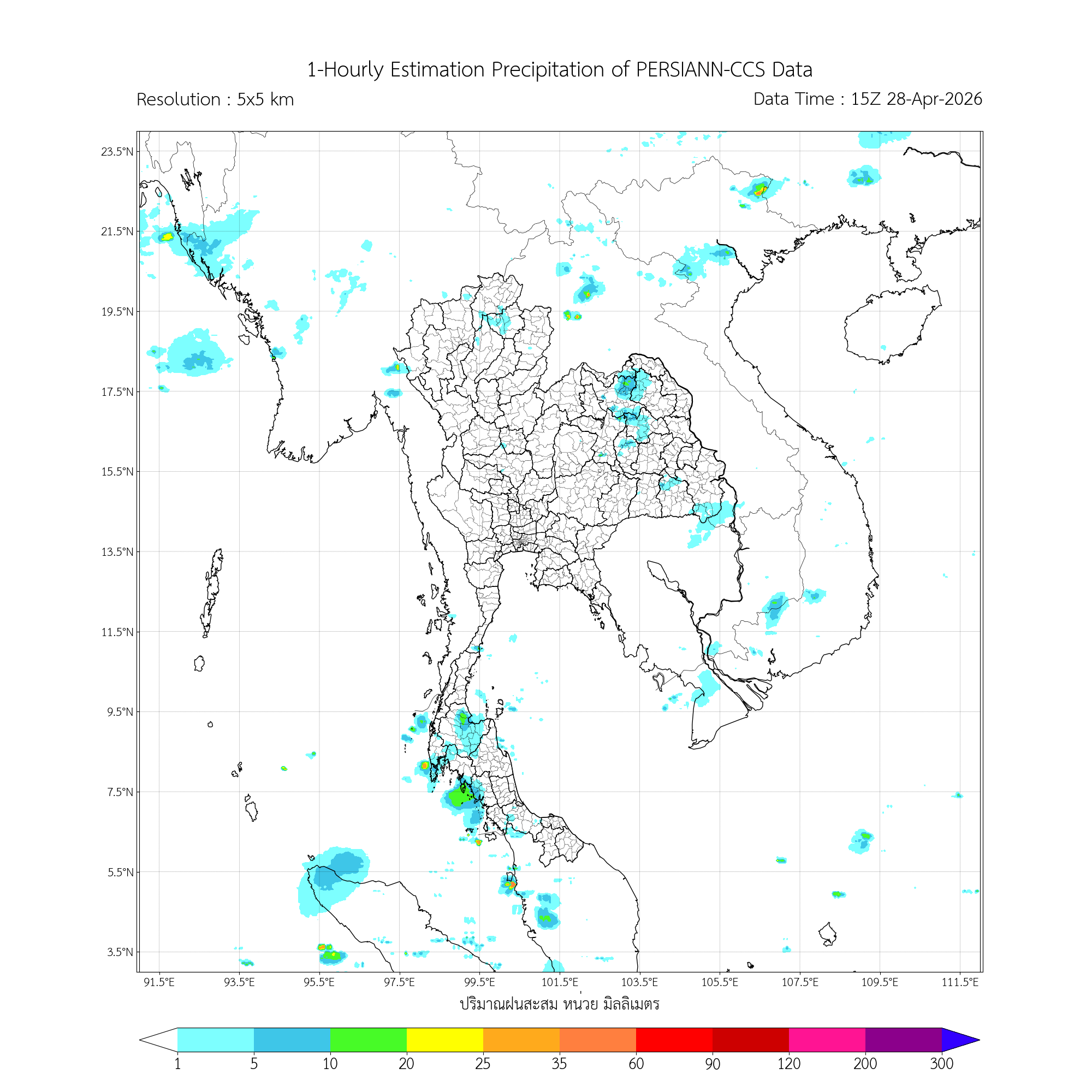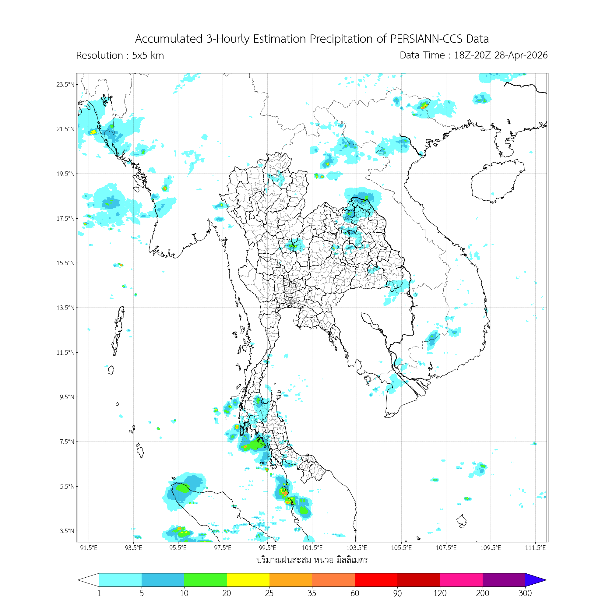 การประมาณค่าฝนจากดาวเทียม เมื่อวาน (28/04/2026)