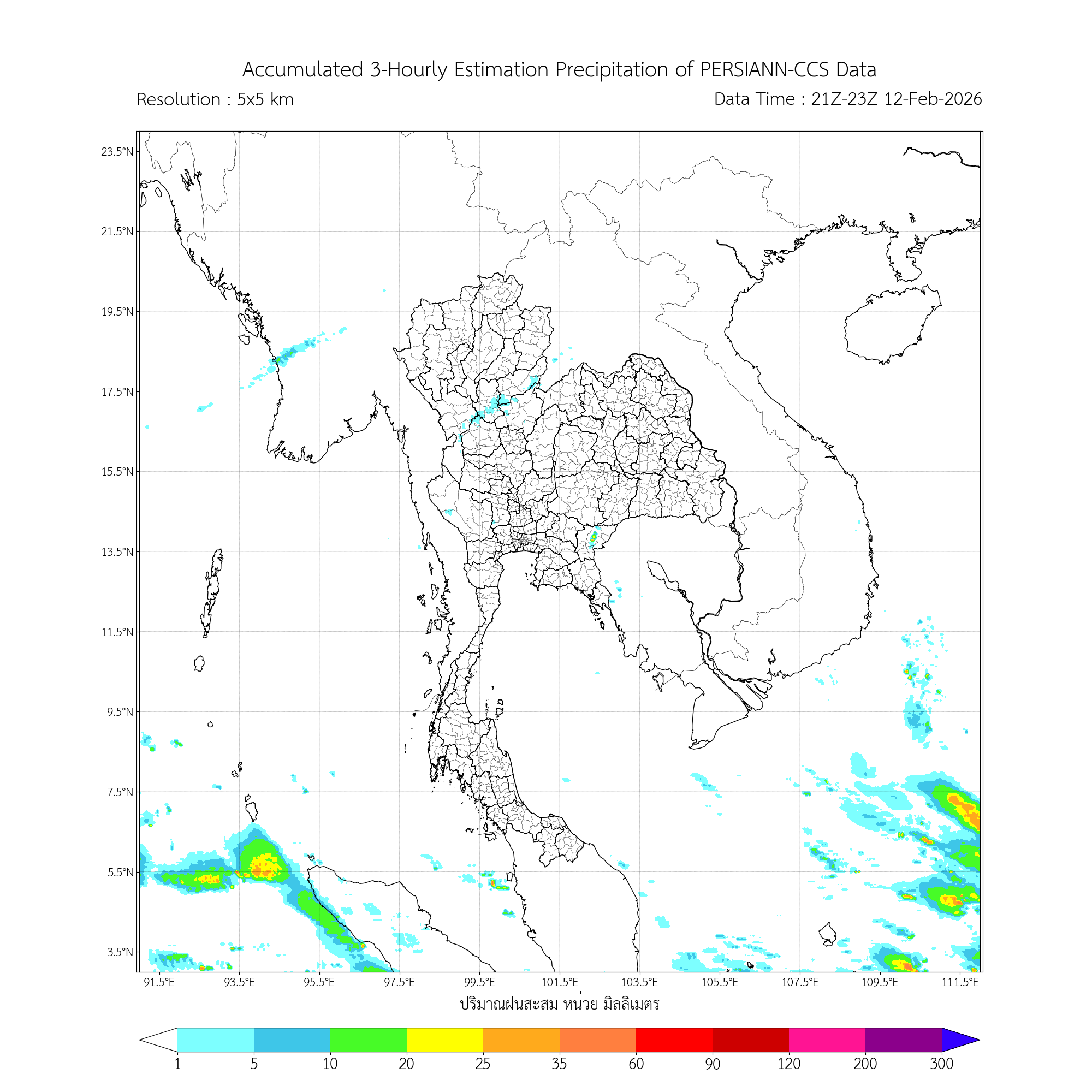 การประมาณค่าฝนจากดาวเทียม เมื่อวาน (12/02/2026)